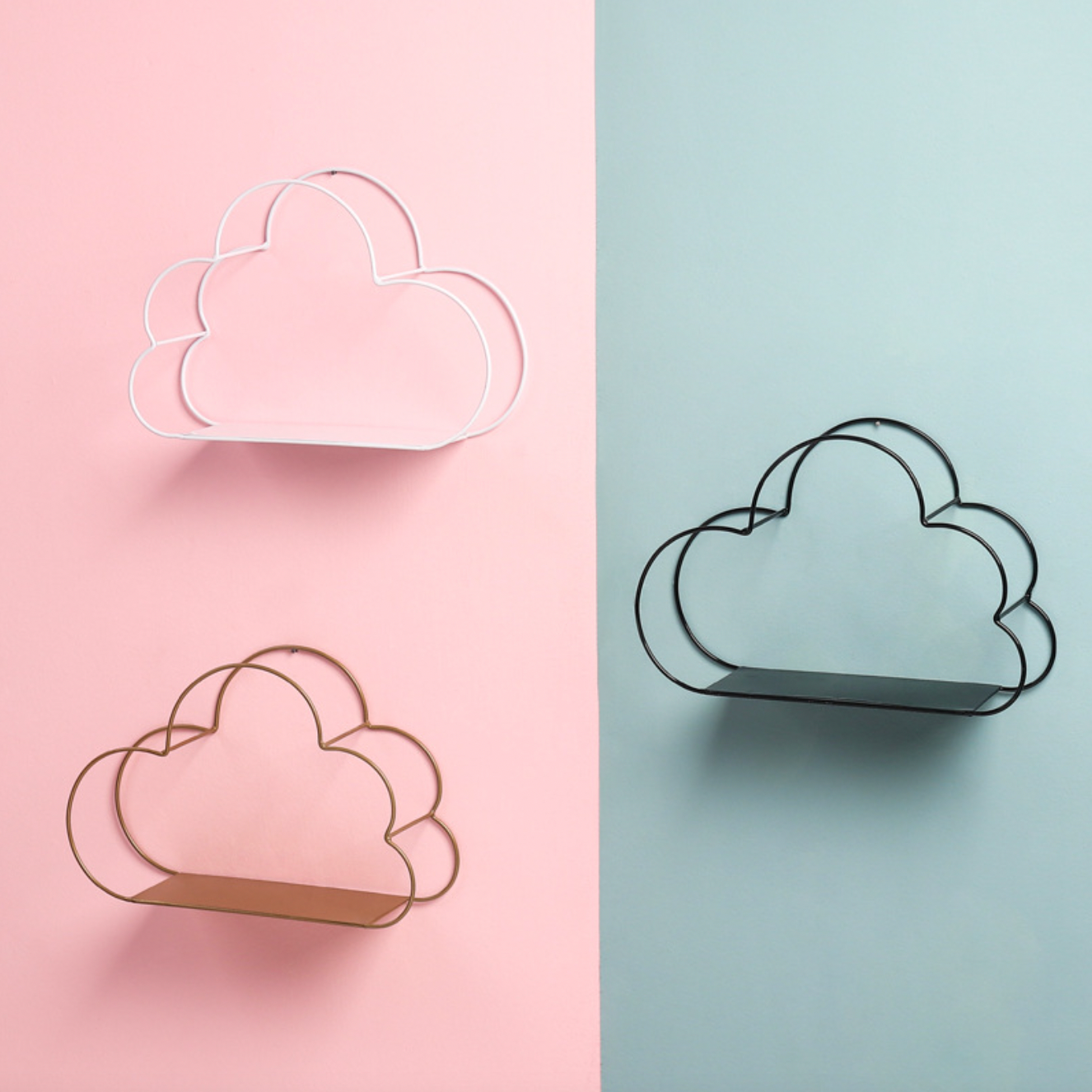 Metal shelf in the shape of a cloud to adorn the walls of the bedroom or living room. Perfect for utilizing space, the wall shelf can be used as a hanging bookshelf or to place showpieces, photographs and mementos and show them off to visitors. The quirky shape and attractive colors blend well with any interior - making the metal rack a one-of-a-kind addition to the house.