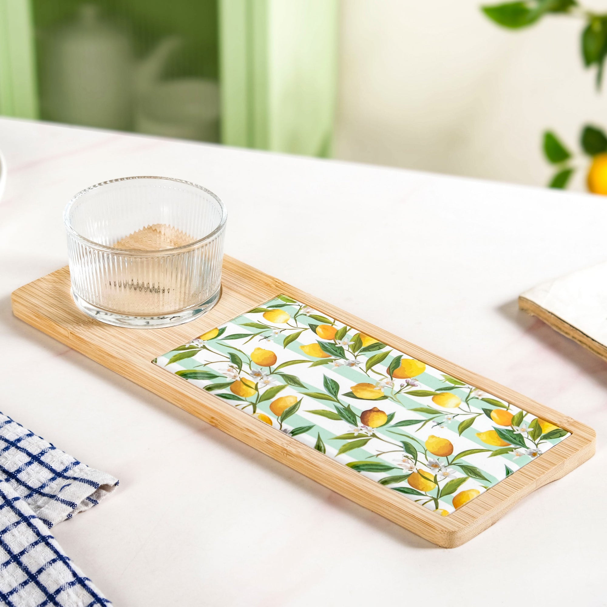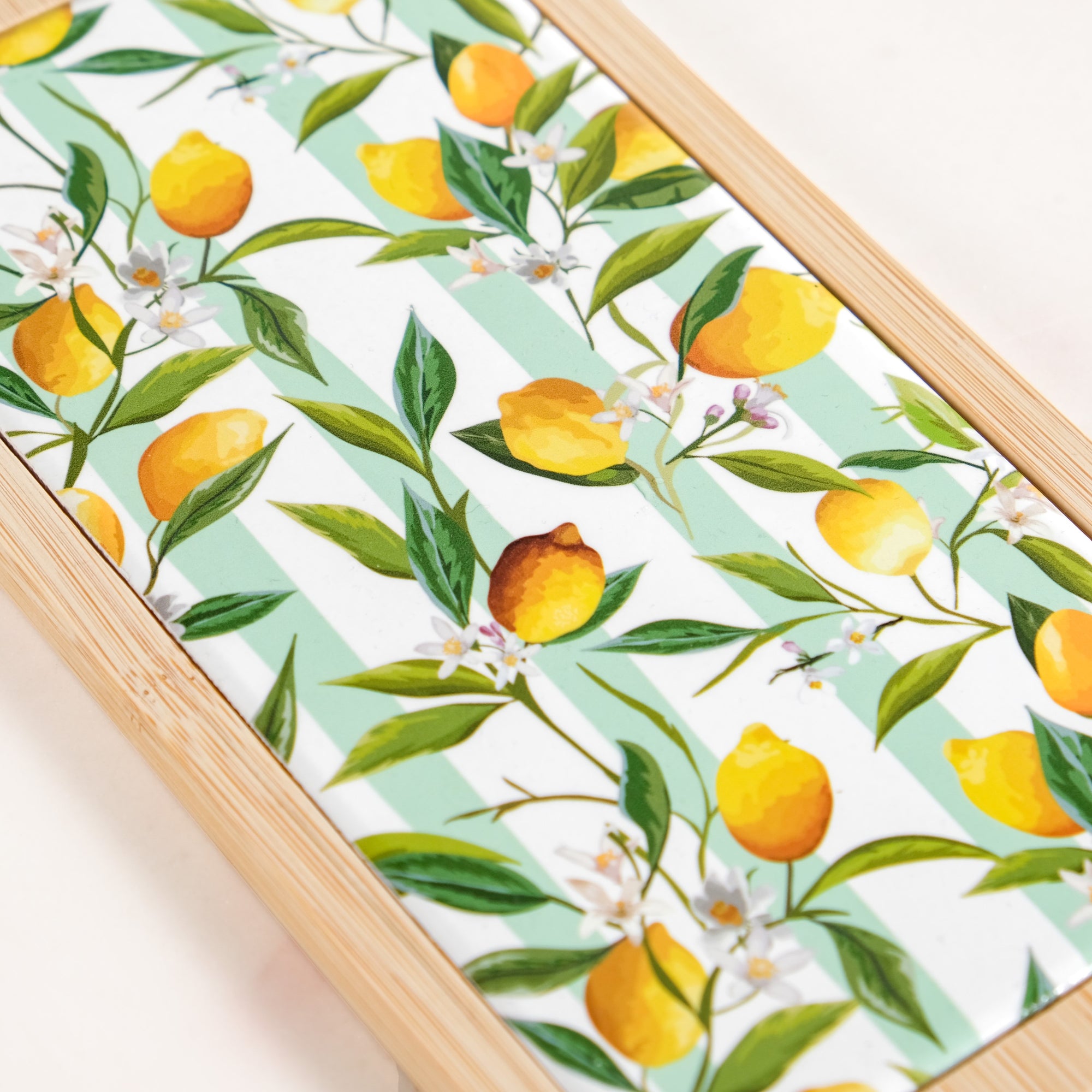 Host in style with this lemon-themed serving platter! Crafted from bamboo and ceramic, it adds a zesty pop of colour and charm, turning every serving moment into a bright, cheerful delight.