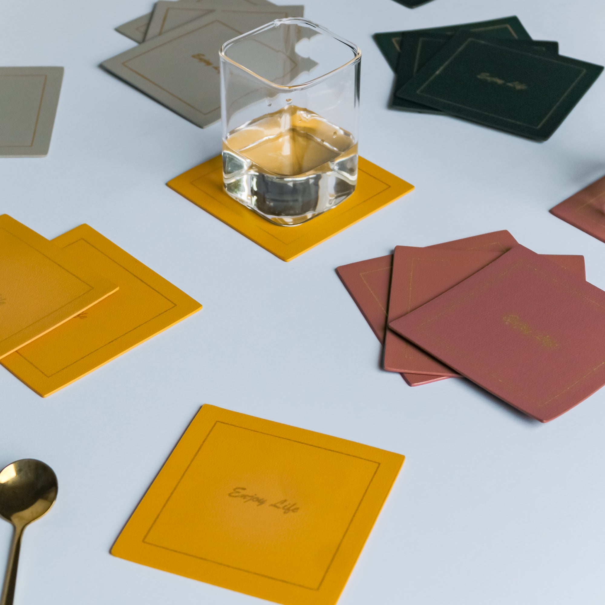 The leather coaster carries a contemporary style and comes in many fascinating colors. The coasters add a dash of fun and color to the tabletop, be it the coffee table or the dinner table. The diverse shades of colors help to establish a casual and relaxed tone to any setting, be it casual or formal.