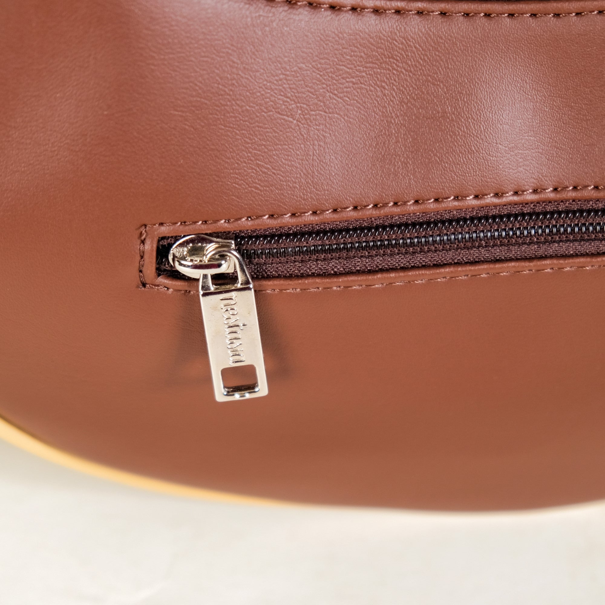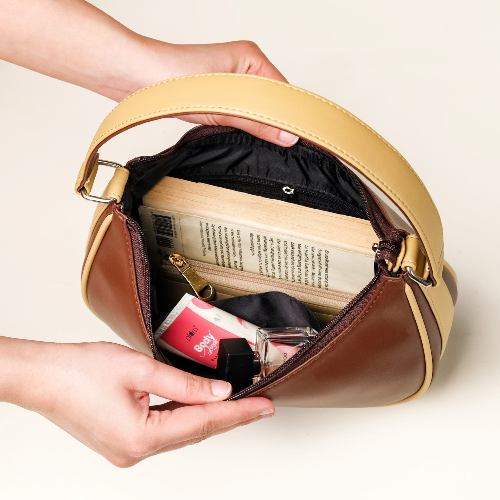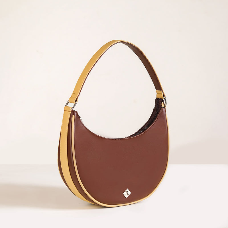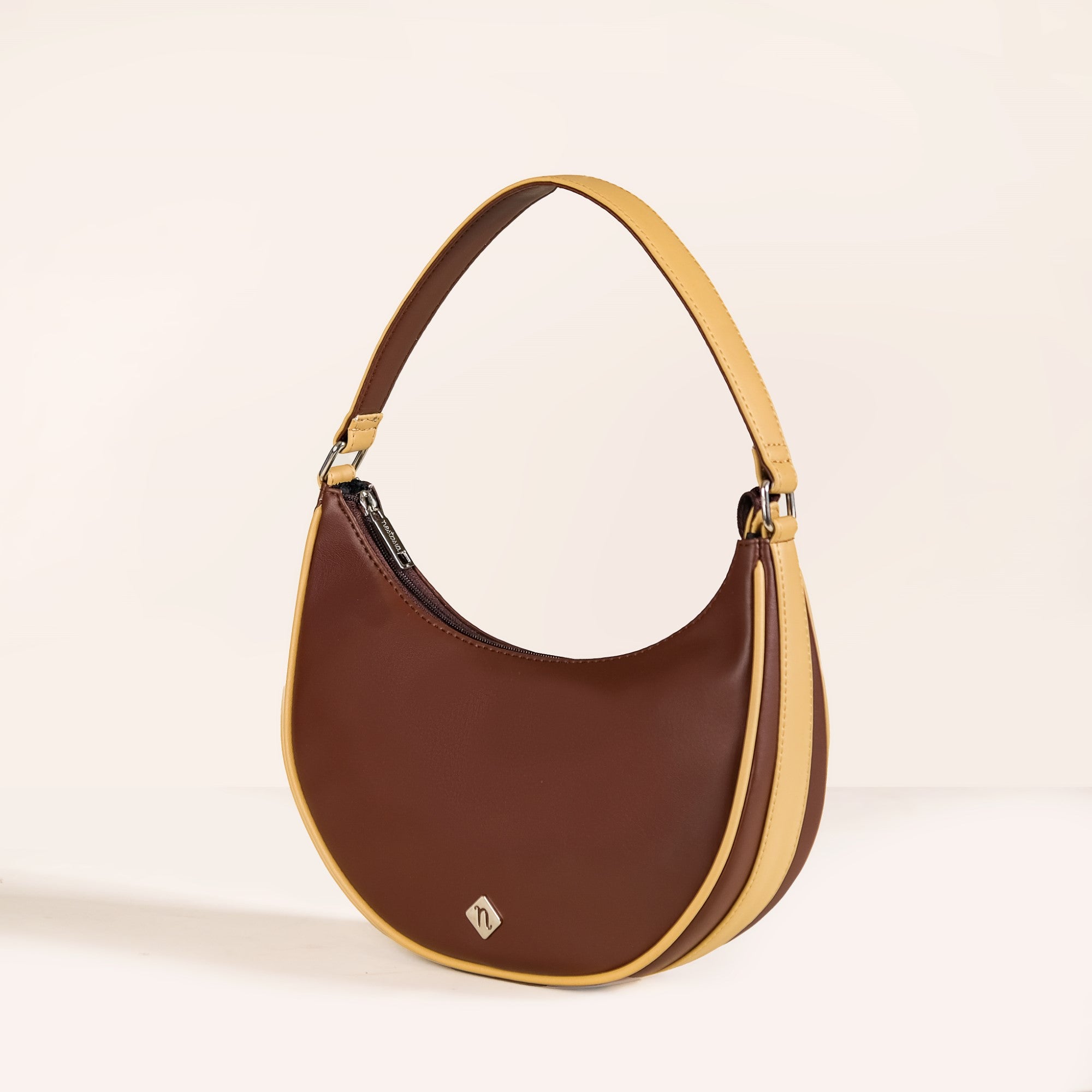 The brown half-moon shoulder bag complements various outfits and occasions, from casual outings to formal events, adding a touch of sophistication to any ensemble.