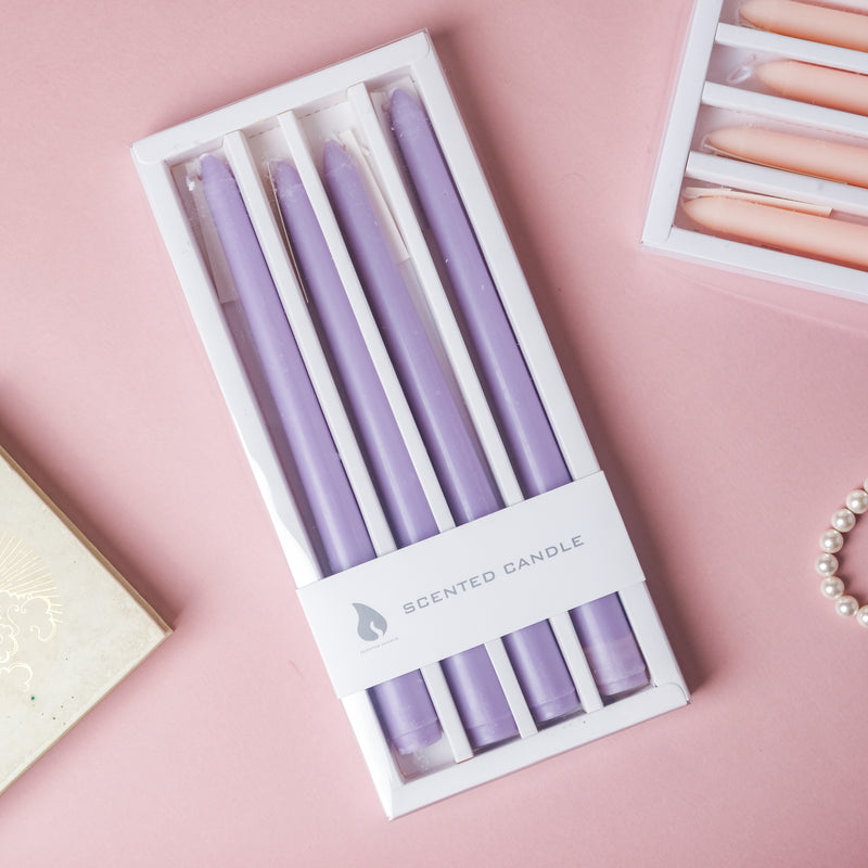 With its extremely modern color tones, the taper candle set can brighten up the house on special occasions such as a birthday, Christmas party, Diwali, Eid, housewarmings, and so on. The wax candles are available in a pack of four in the same color to bring elegance and flair to your home decor. The complimentary candle colors are ideal for a themed dinner party set-up, and one may also select a pair that matches your home's color scheme. Colored taper candles are a lovely present as well to gift to near and dear ones.