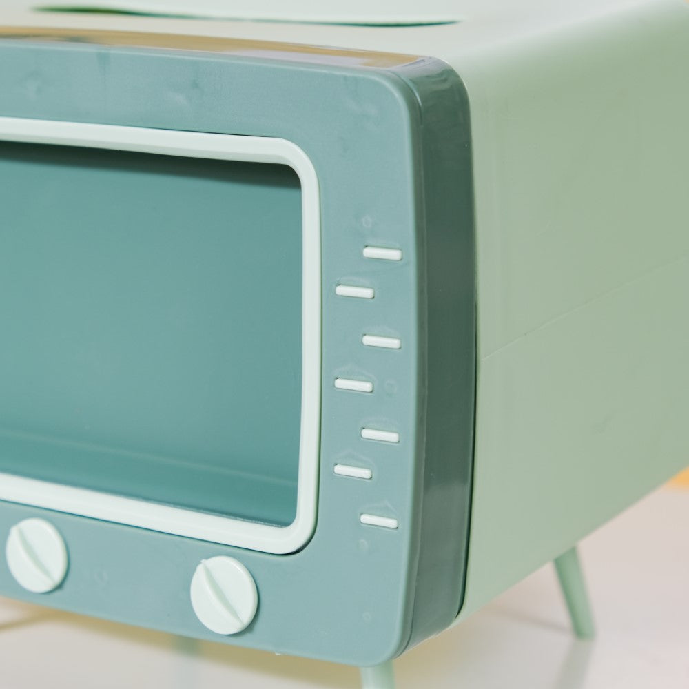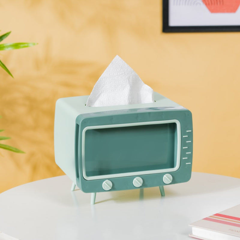 The tissue box or tissue box holder is made of PVC material. This modern green and white tissue box cover or tissue dispenser box, designed in a quirky TV shape, ensures that tissues are conveniently accessible while watching movies or in various settings like living rooms, bedrooms, or workplaces. The unique design of the decorative tissue box cover adds a playful touch to your surroundings and ensures you're always prepared for any tissue emergency.