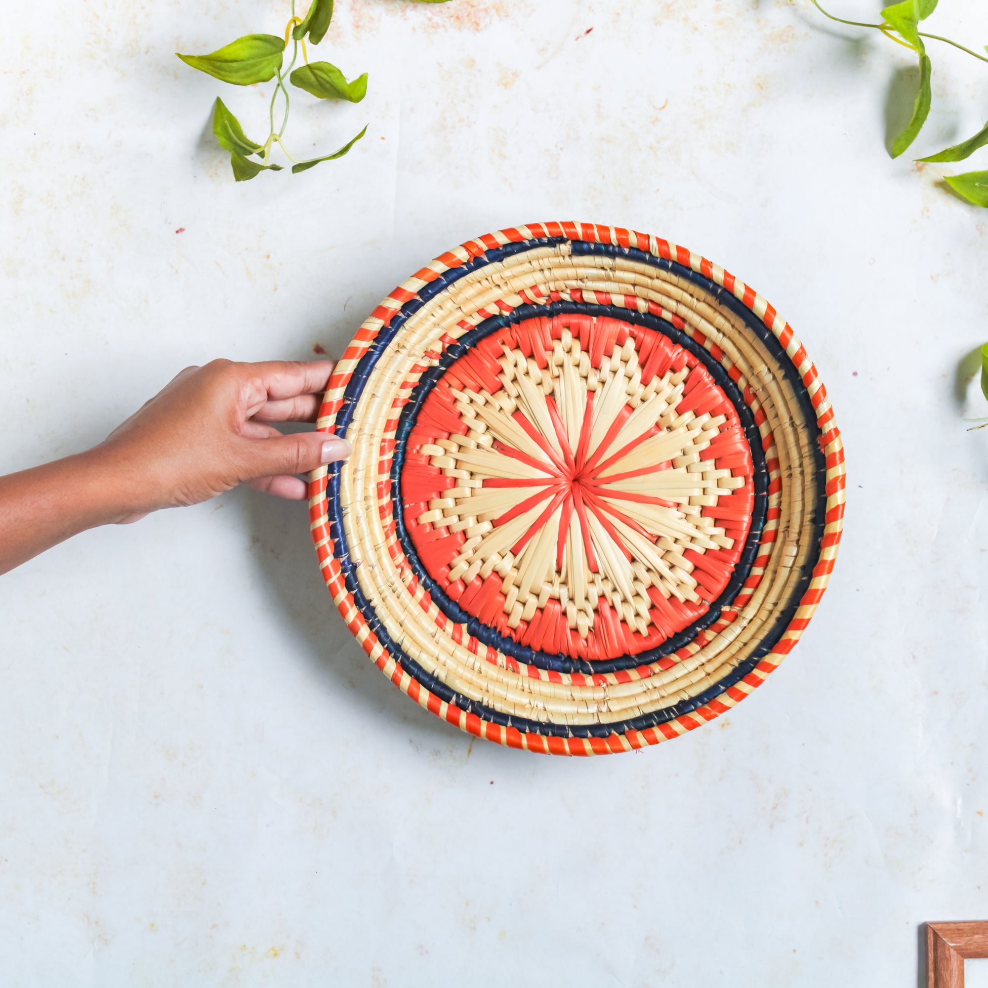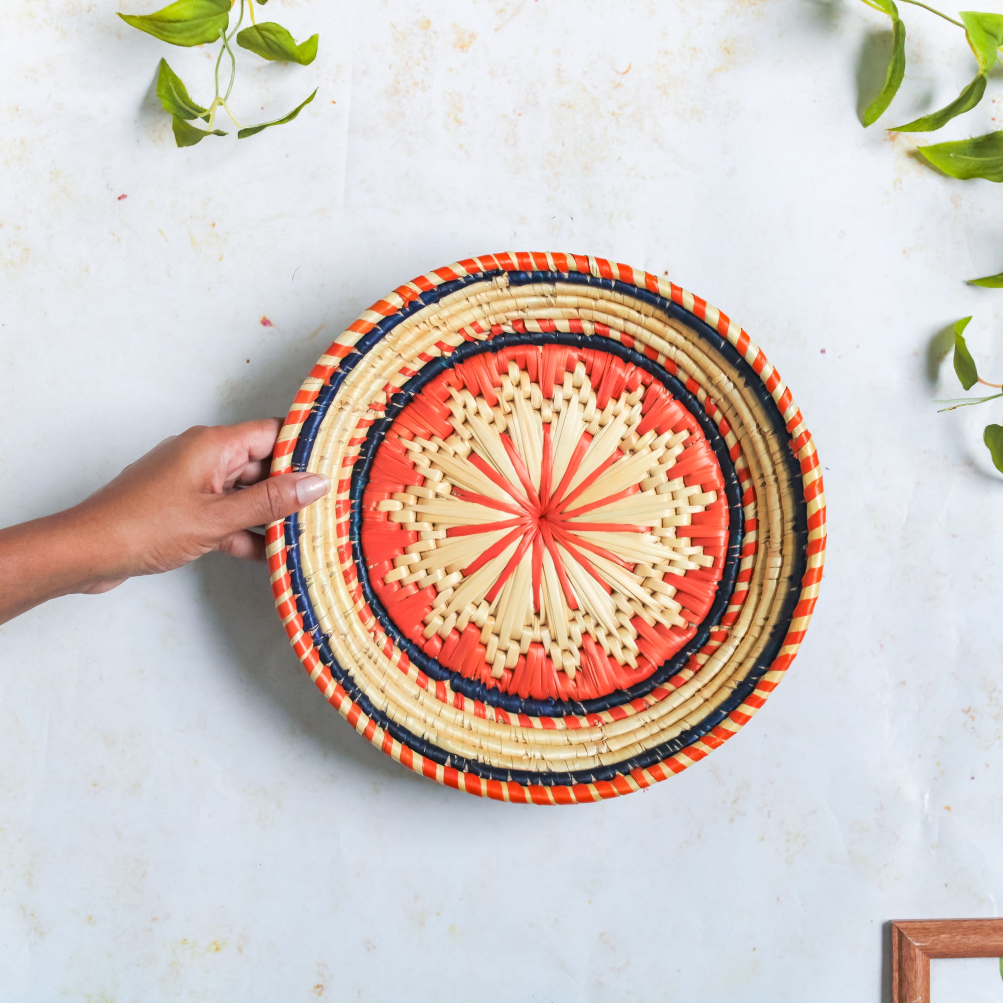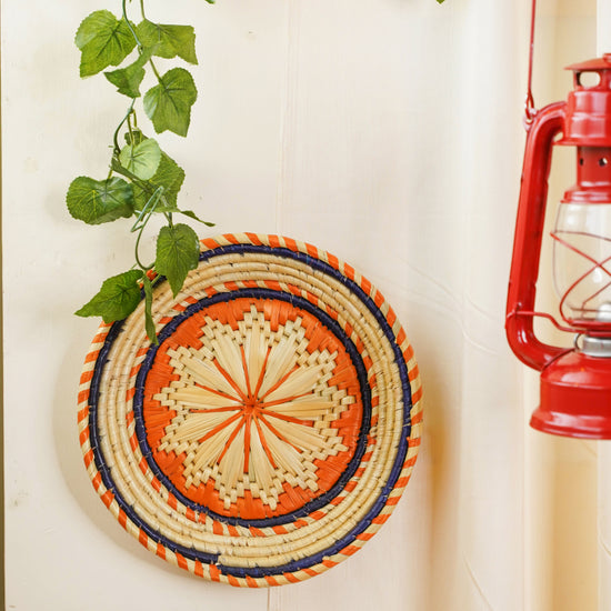 Introducing our vibrant and eye-catching colourful Moonj wall plate, where art meets functionality! Elevate your home decor with the stunning, handcrafted wall decor object. The plate boasts a mesmerizing blend of vivid hues, meticulously designed to add a burst of life to any wall. Our artisans have skillfully infused rich pigments, resulting in a stunning symphony of colours that will transform your space into a work of art. The durable, sustainable, and easy-to-mount wall plate is perfect for both indoor and outdoor settings, making it versatile and suitable for any style or theme. Make a statement and ignite your imagination with our colourful Moonj wall plate today!