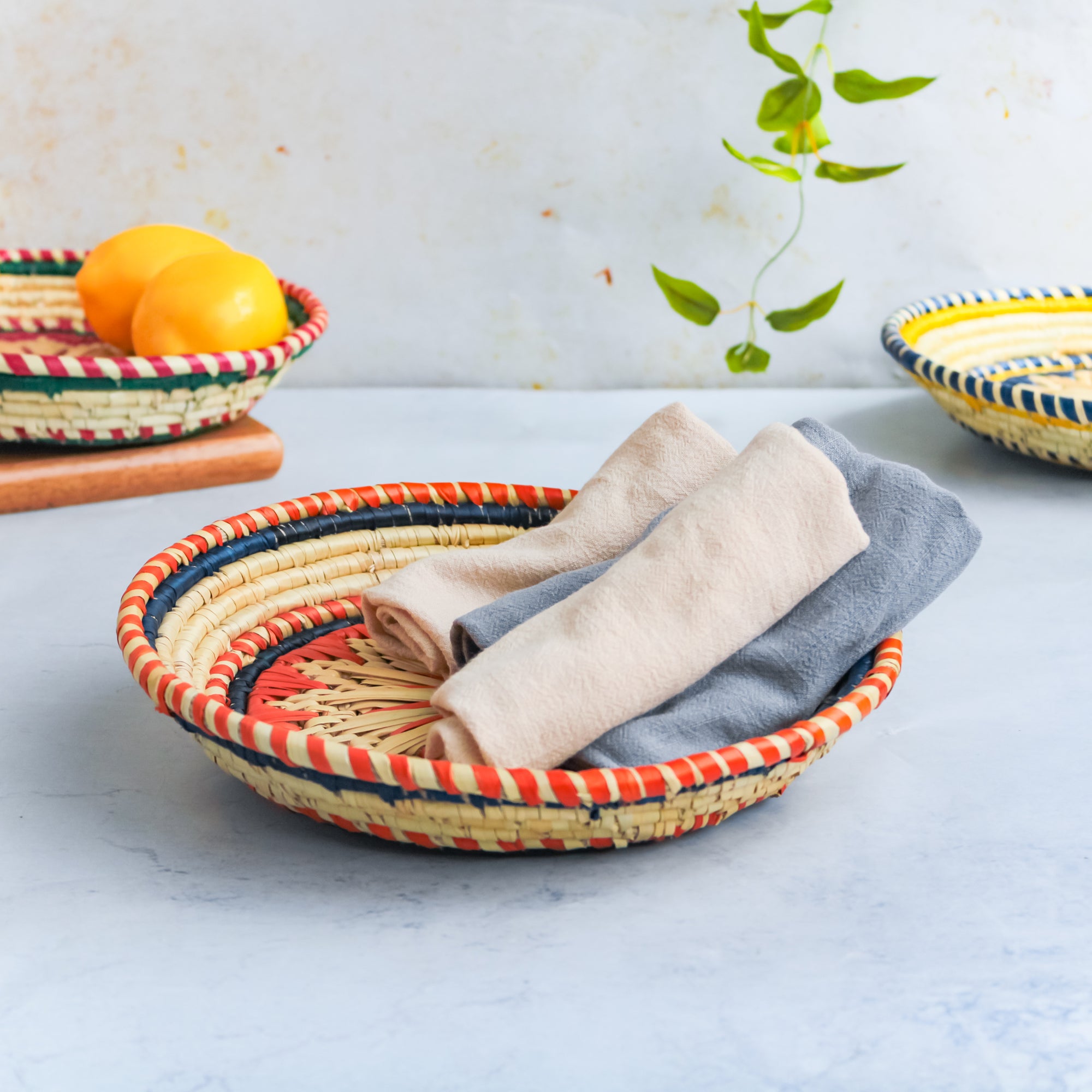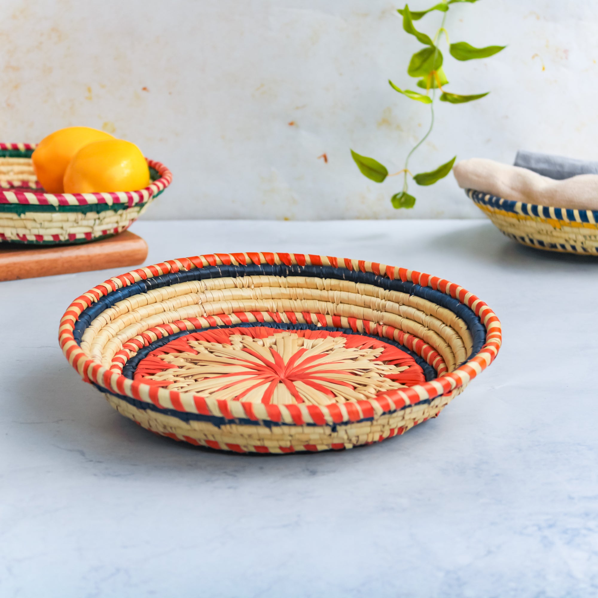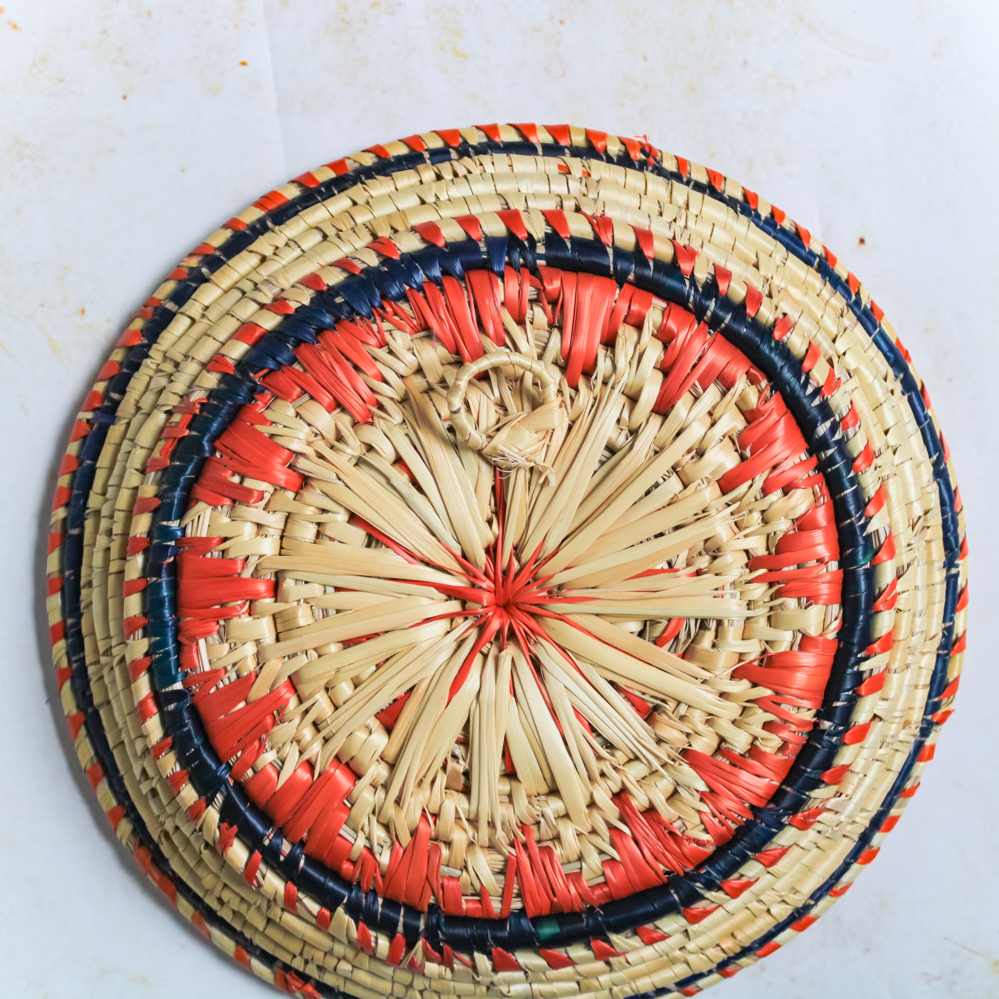Introducing our vibrant and eye-catching colourful Moonj wall plate, where art meets functionality! Elevate your home decor with the stunning, handcrafted wall decor object. The plate boasts a mesmerizing blend of vivid hues, meticulously designed to add a burst of life to any wall. Our artisans have skillfully infused rich pigments, resulting in a stunning symphony of colours that will transform your space into a work of art. The durable, sustainable, and easy-to-mount wall plate is perfect for both indoor and outdoor settings, making it versatile and suitable for any style or theme. Make a statement and ignite your imagination with our colourful Moonj wall plate today!
