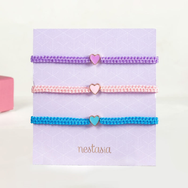 Colourful Hearts Thread Bracelet Set Of 3