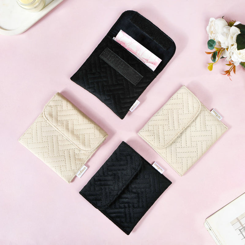 Utility: Each small pouch is designed to hold 4-5 sanitary napkins, keeping them neatly organised and easily accessible. The compact size makes them ideal for handbags, travel kits, or desk drawers, ensuring discretion and convenience wherever you go.