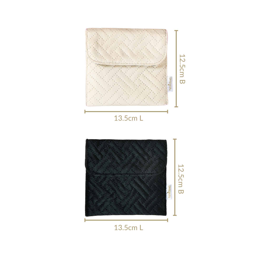 Design: Crafted with a luxurious 100% premium velvet exterior, the pouches exude sophistication while offering a soft, plush feel. The heat-quilted basket weave design on the velvet exterior adds a touch of texture and refinement. The set includes two black and two off-white pouches, ensuring versatility in styling.
