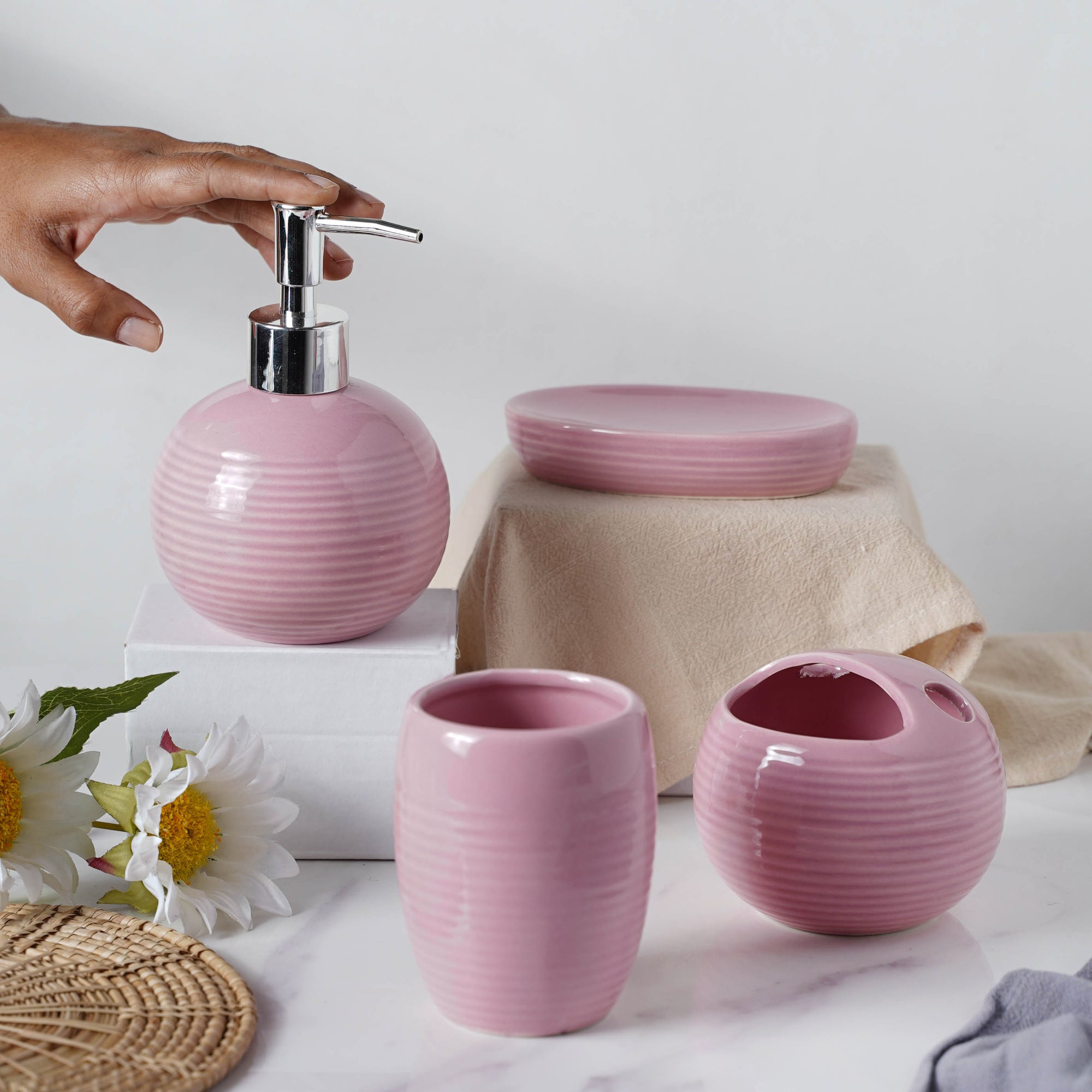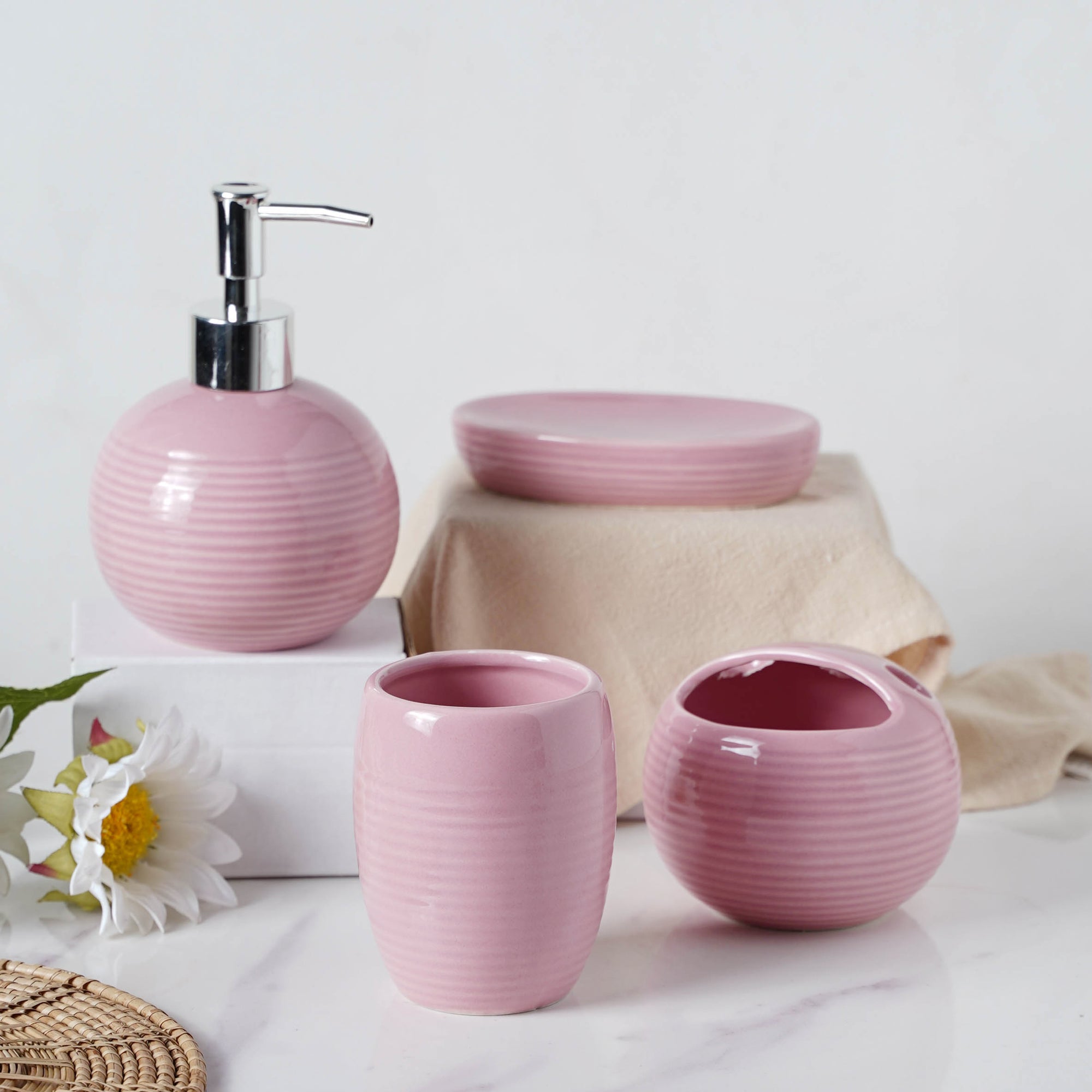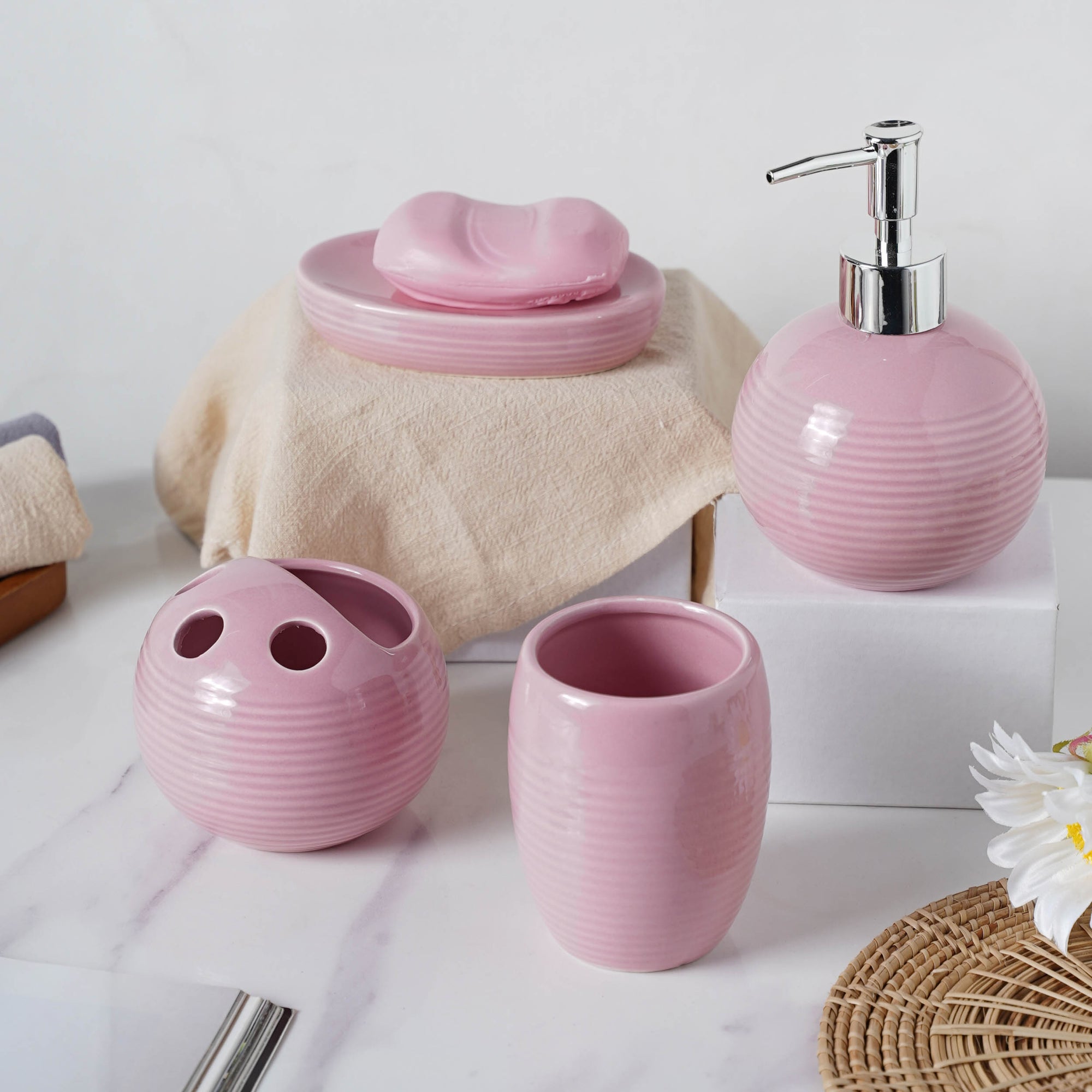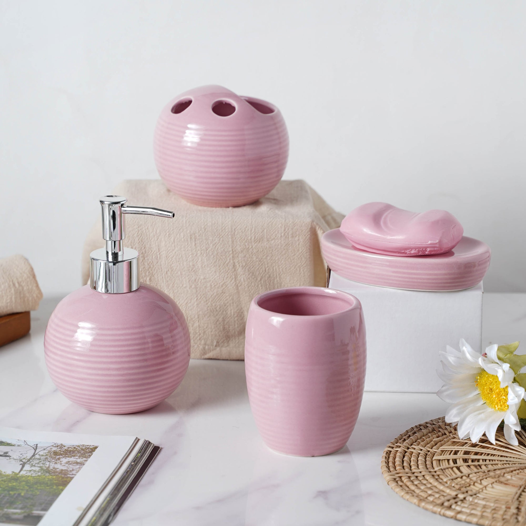 Kanwartej Singh Complete Set of Ceramic Bath Accessories Pink