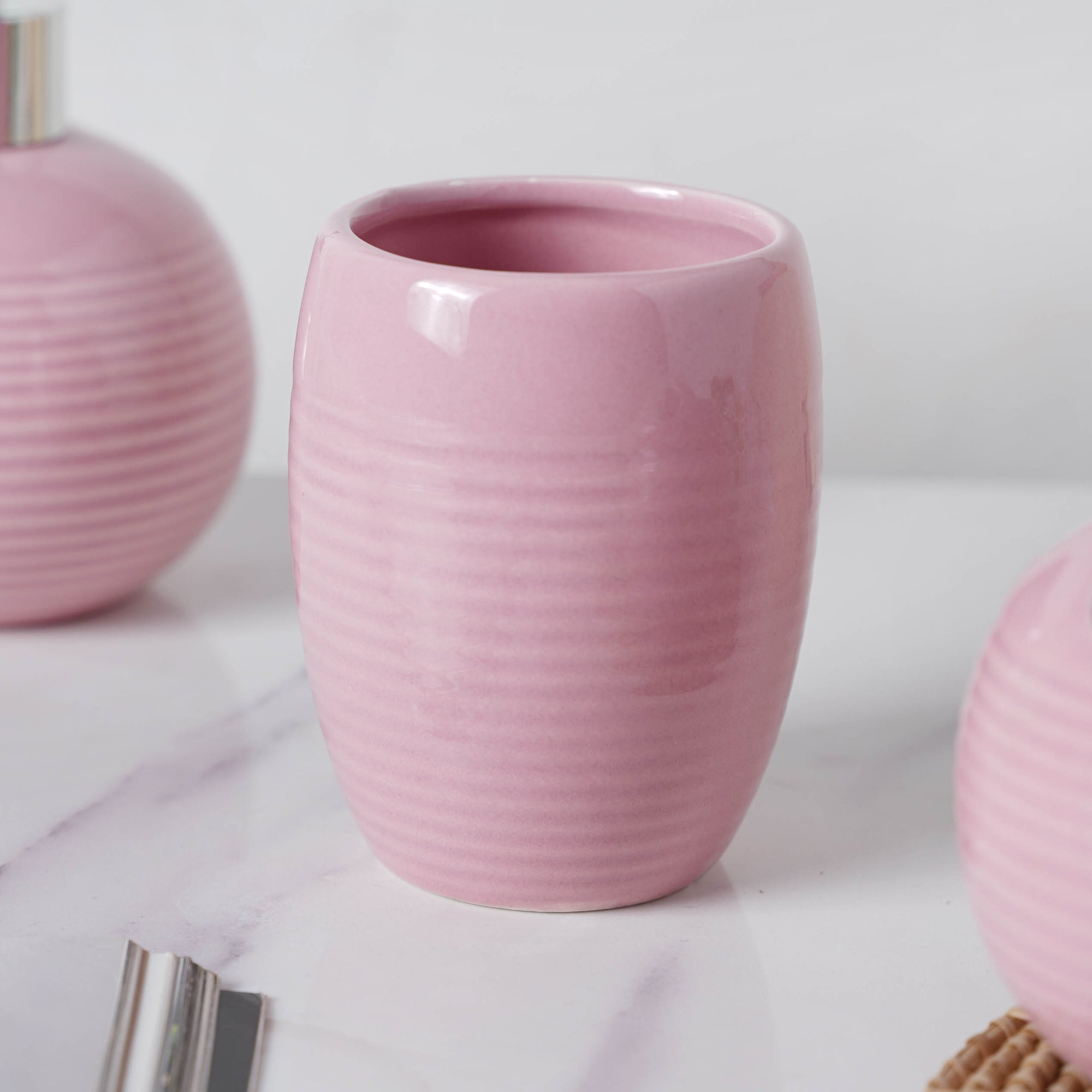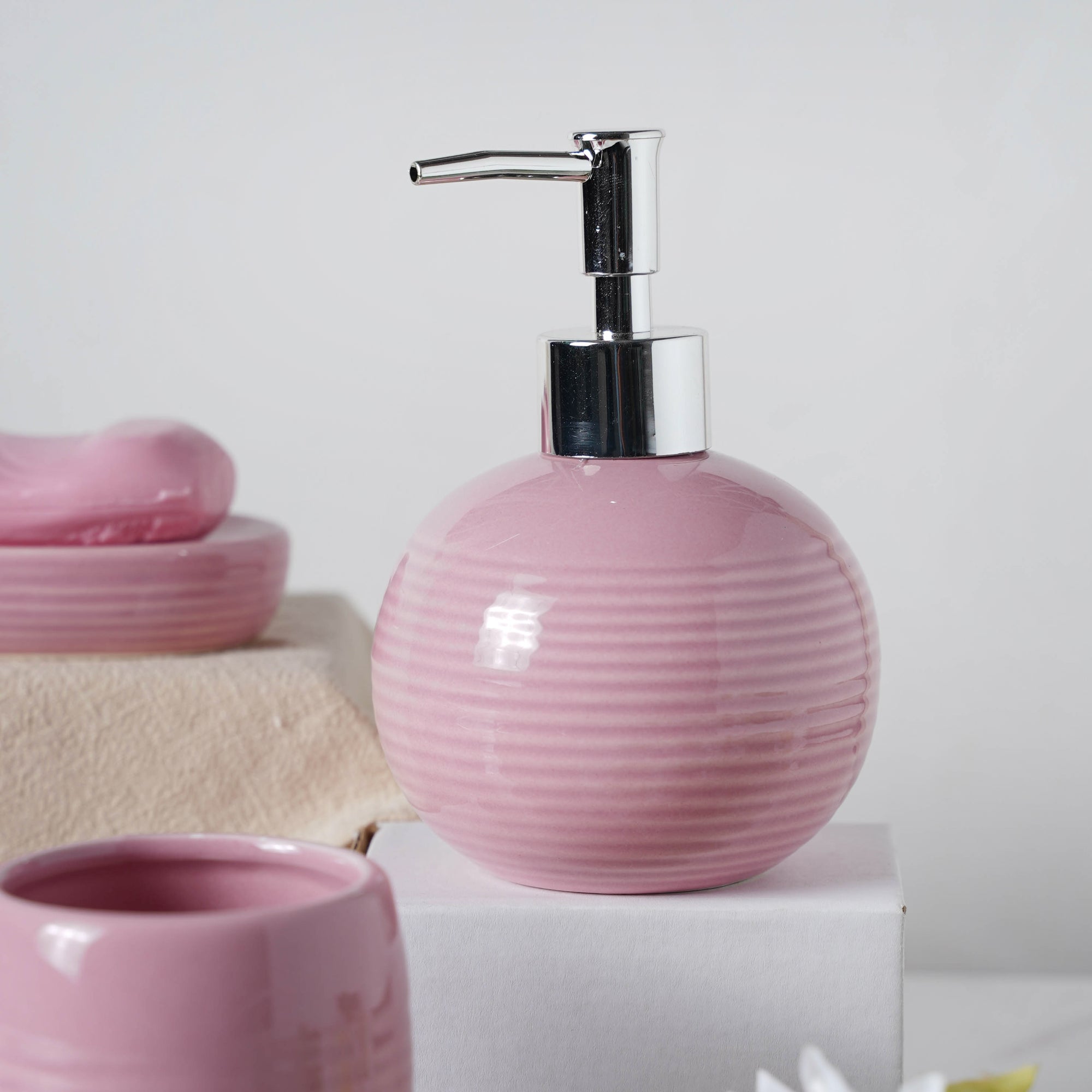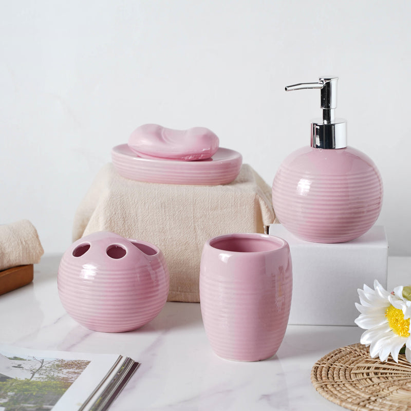 Sankalp Verma Complete Set of Ceramic Bath Accessories Pink