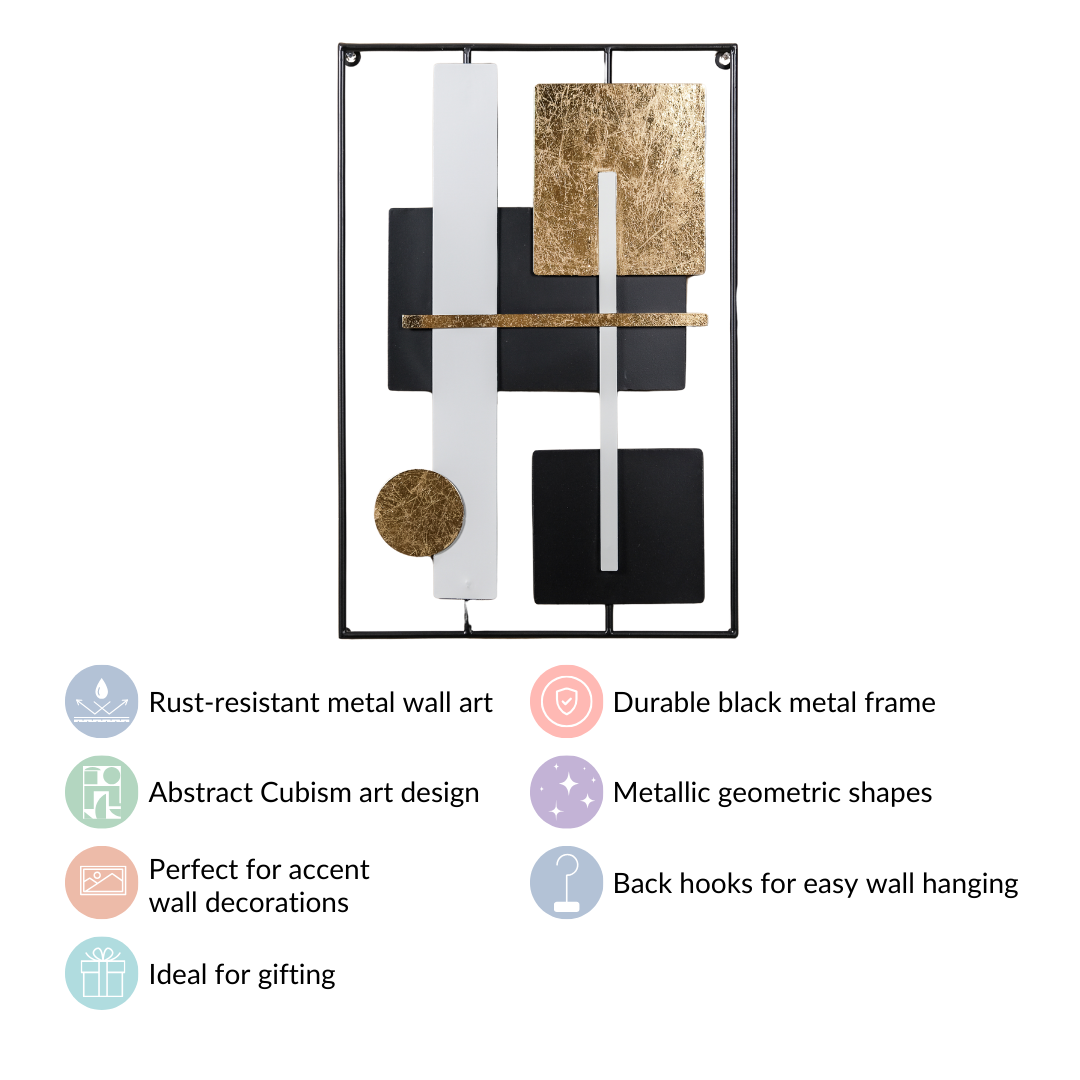 Certainly! Embodying the spirit of avant-garde art, the wall art features overlapping shapes that portray an intriguing visual narrative. The striking aesthetics combined with the durable frame and premium-quality build make the piece a great present for your loved ones.