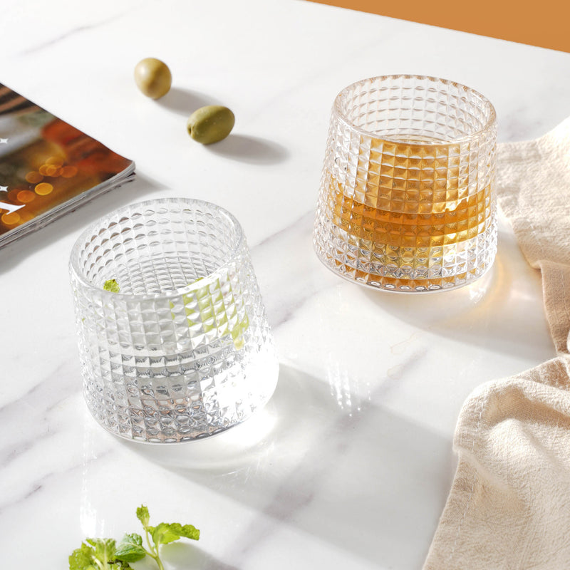 A cool, vintage-style check pattern is all that one needs on one's kitchen rack to add further charm to all homemade smoothies and juices. The cubist design that adorns the glass is a classic, suitable for both alcoholic and non-alcoholic beverages. The drinkware is suitable for everyday use as well special occasions like a housewarming or office gathering. The hand-blown glass features a sleek and simple form that demonstrates the flair and expertise of its craftspeople. The glasses are pieces in which one will make all one's happy toasts with friends and family.