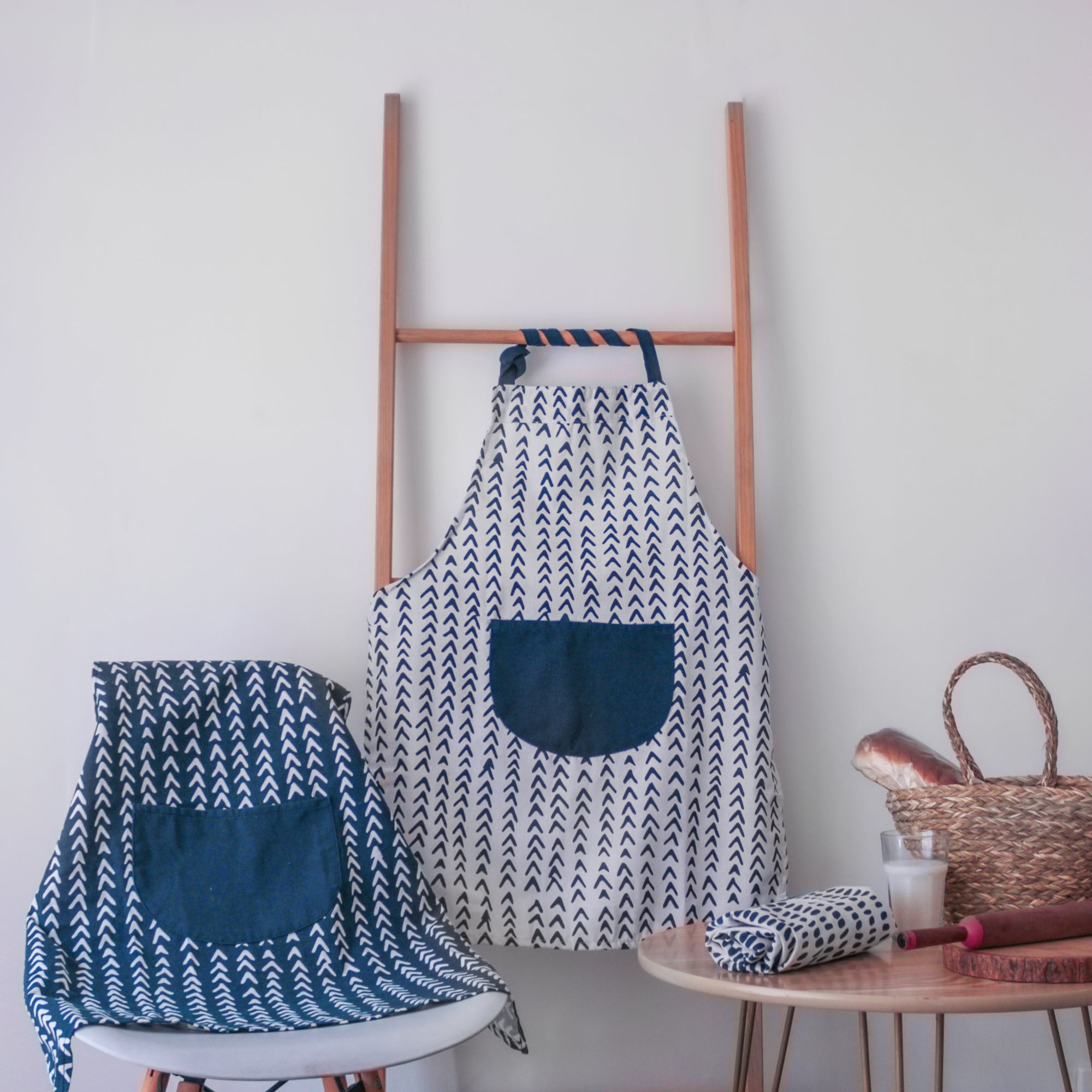 Nestip: The cooking aprons can be clubbed with lunch bags of similar prints in blue and white