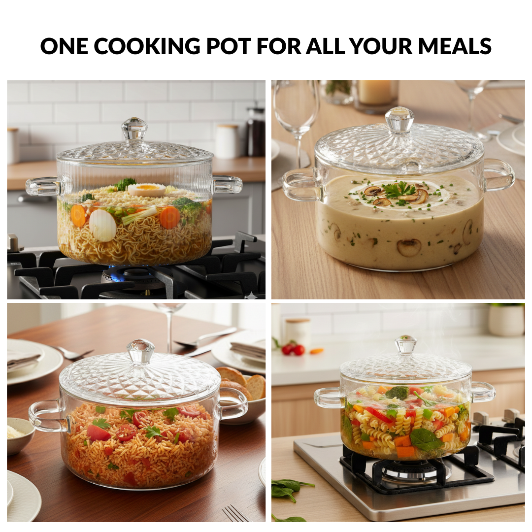 This beautiful glass cooking pot is crafted from superior borosilicate glass, ready to become the star of your cookware collection, simplifying everything from prepping to serving.