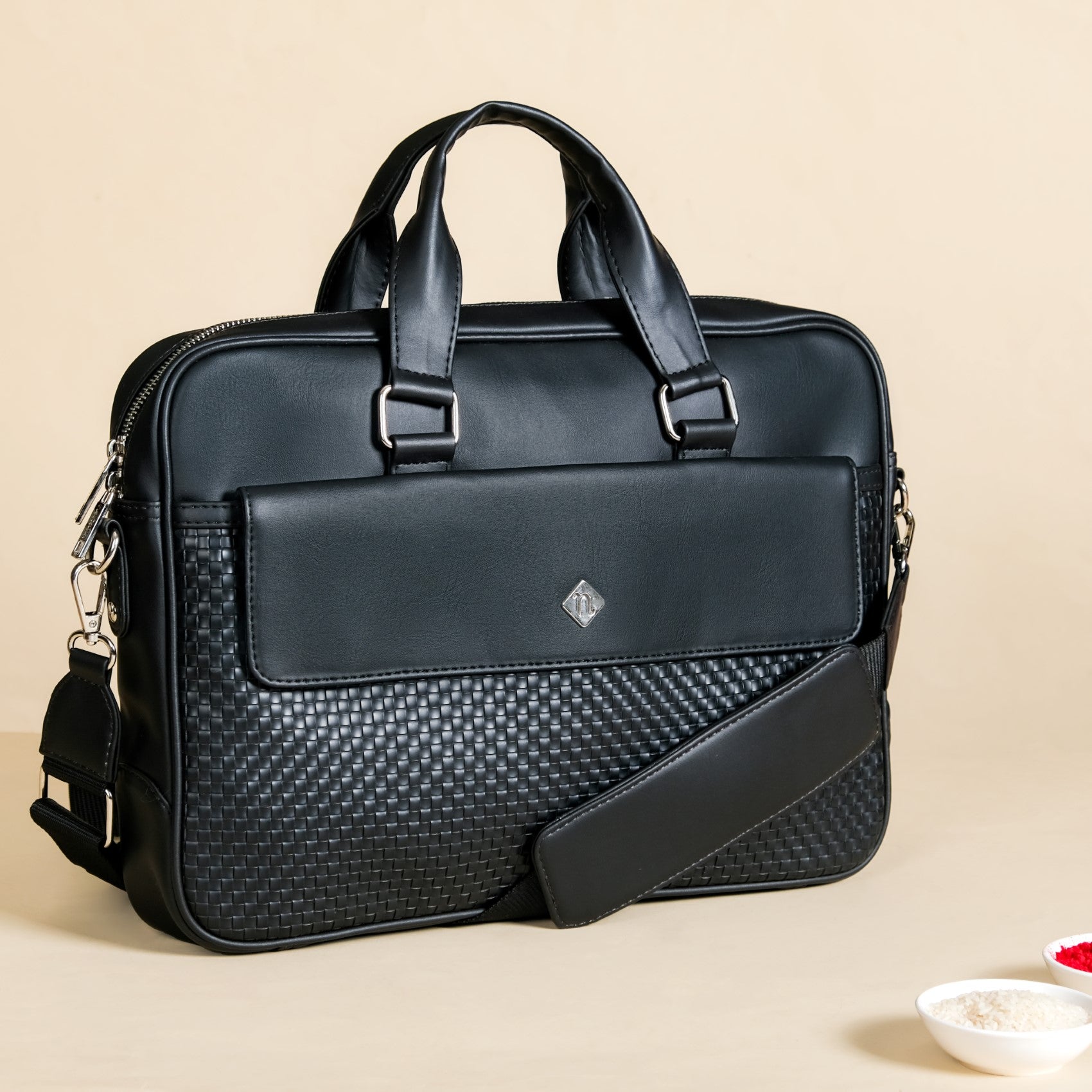 Embossed Vegan Leather Laptop Bag Black |