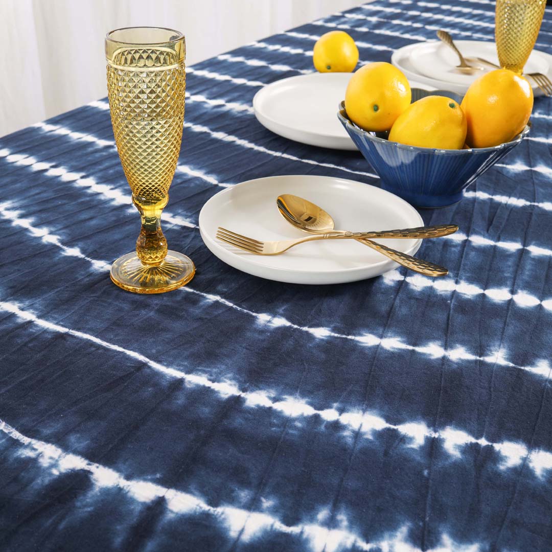 Lay down the new tie and dye indigo and white table cloth for a get together to give guests the aesthetic feel. The table cloth suits during at any time of the day and matches best with the indigo food vibrations. Made of 100% cotton and perfect for all occasions.