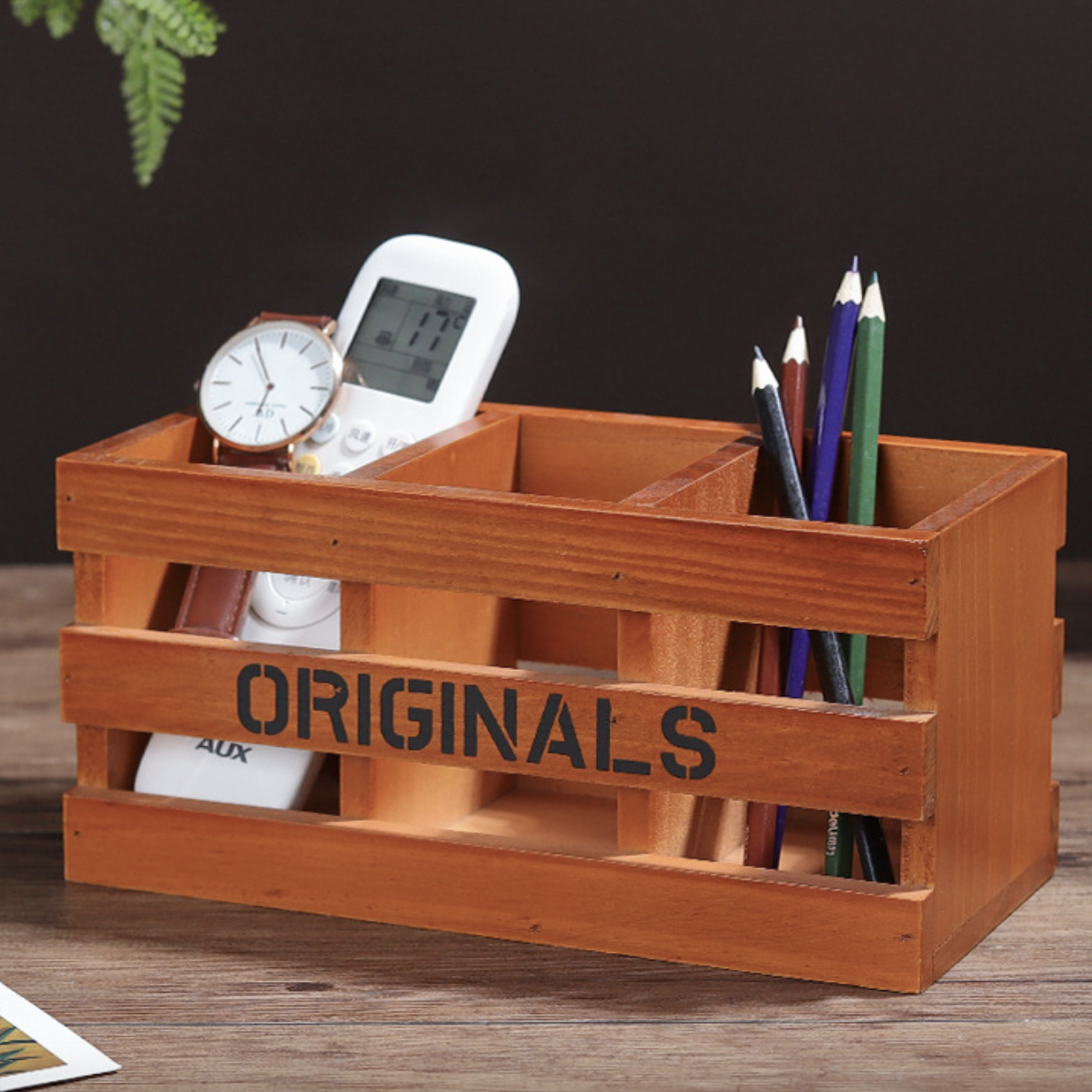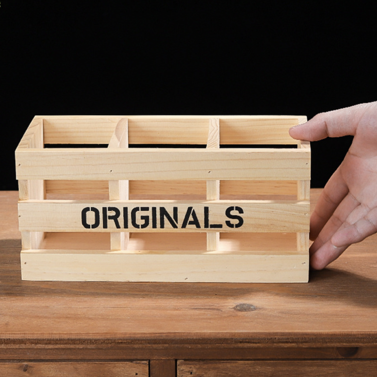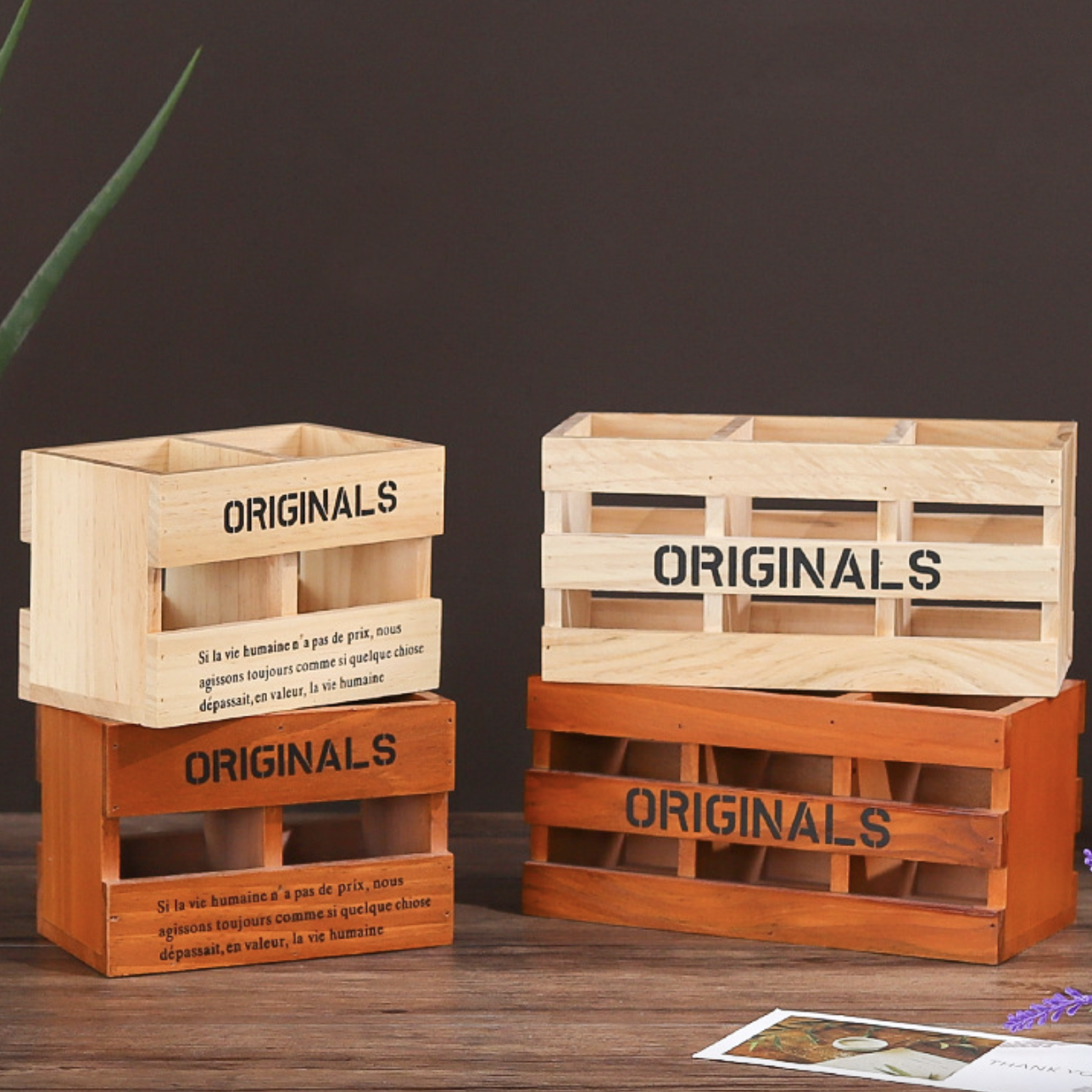 Crate stand with dividers installed to store all your books, newspapers or even toiletries. The wooden shelf which can be placed on a flat surface or hooked to a wall for that rustic barn aesthetic. Available in both a light wood and a dark wood variation, the crate shelf is gonna fit right into any home setting.