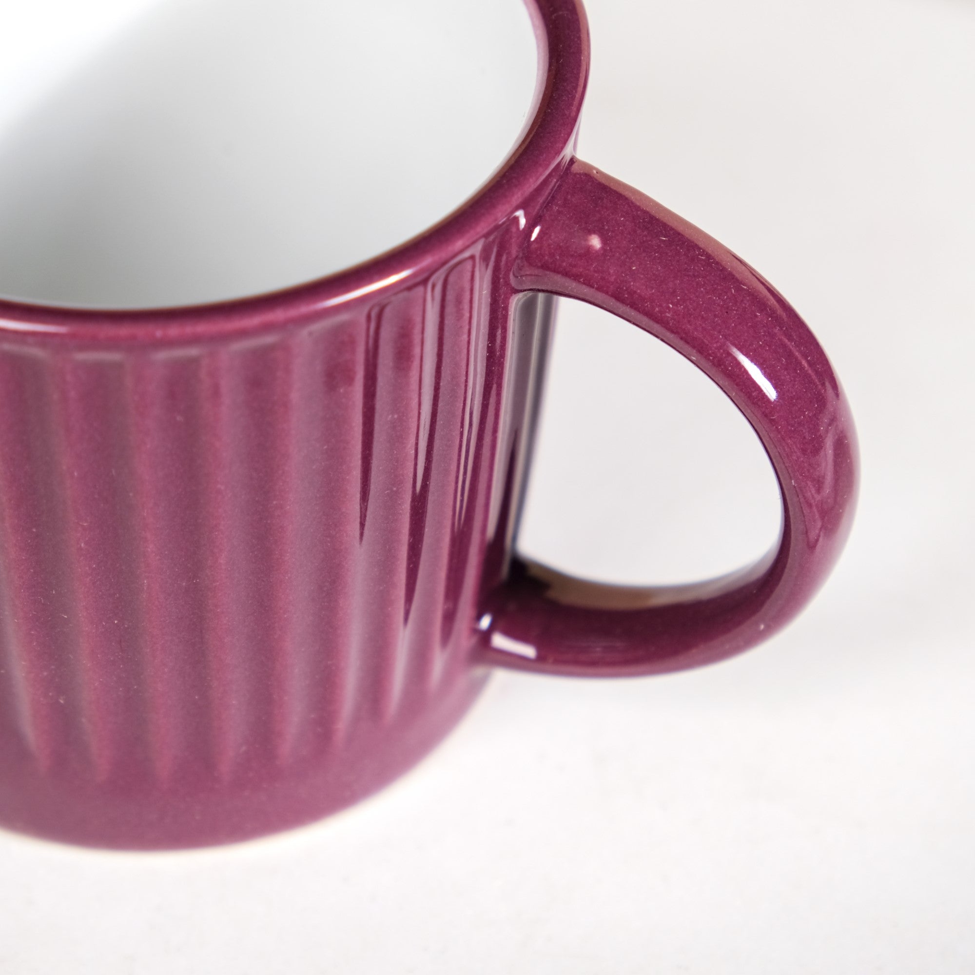 Design: This purple ceramic coffee cup set features a deep, warm hue that adds a touch of sophistication to your drinkware collection. The ribbed texture not only gives it a modern, stylish look but also makes it easy to hold. Furthermore, the rounded shape provides a comfortable grip that perfectly nestles into the palm of your hand.