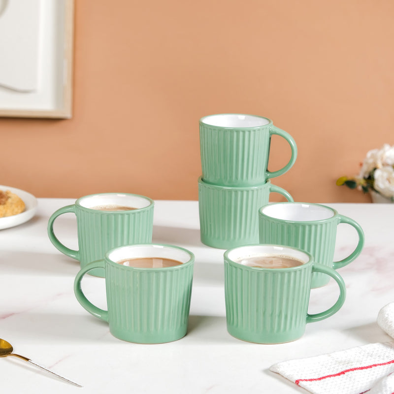 Cresta Set Of 6 Ceramic Coffee Mug Green 300ml
