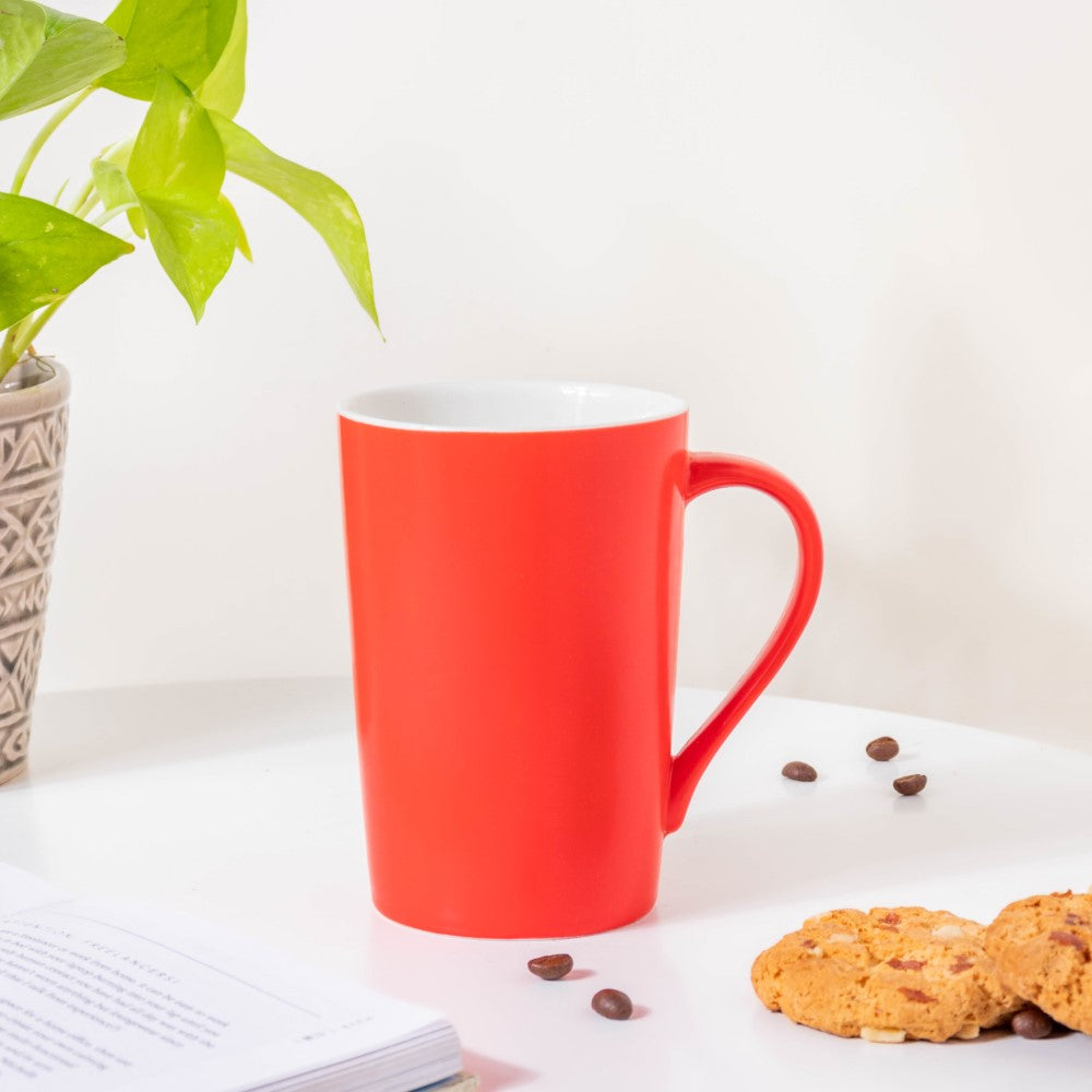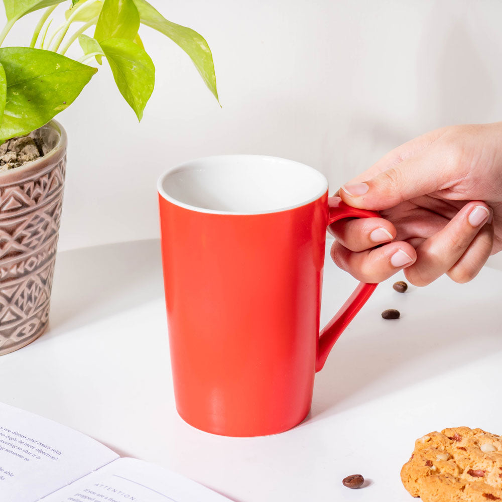 The bright red tall cup comes with a matt finish on the exterior which looks spectacular on a dining table. Make it a regular cup for sipping in the morning coffee or use it to serve the guests. Available in a variety of colors, one can make a set of three such premium quality ceramic cups for making a gift hamper. Features: - High quality ceramic - Sleek finish - Non-toxic and environment friendly - Washable, reusable, and odorless - A perfect gift for any occasion Nestip: Pair the tall cup with a metal straw to serve iced latte or any fruit juice. Size: 7cm D x 11cm H With handle: 11cm L Capacity: 350ml Color: Red and white Material: Ceramic Products included: 1 cup Style: ESP100T10