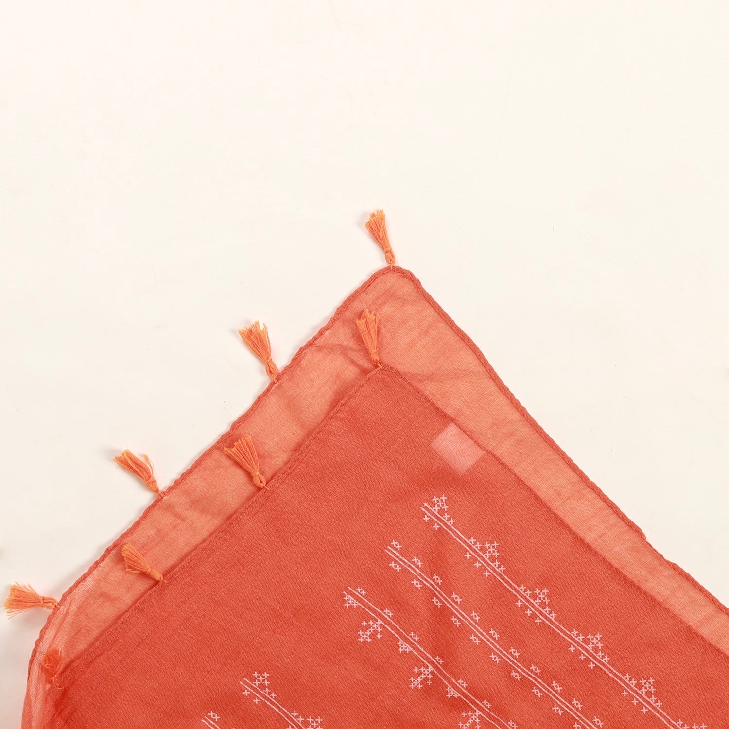 The intricate pattern scarf in orange is a versatile accessory suitable for various occasions and seasons. In cooler months, you can drape it as a stole for added warmth and style. During the warmer seasons, you can wear it as a stylish scarf. Its lightweight and breathable premium-quality fabric ensures that you remain comfortable even in spring and summer.