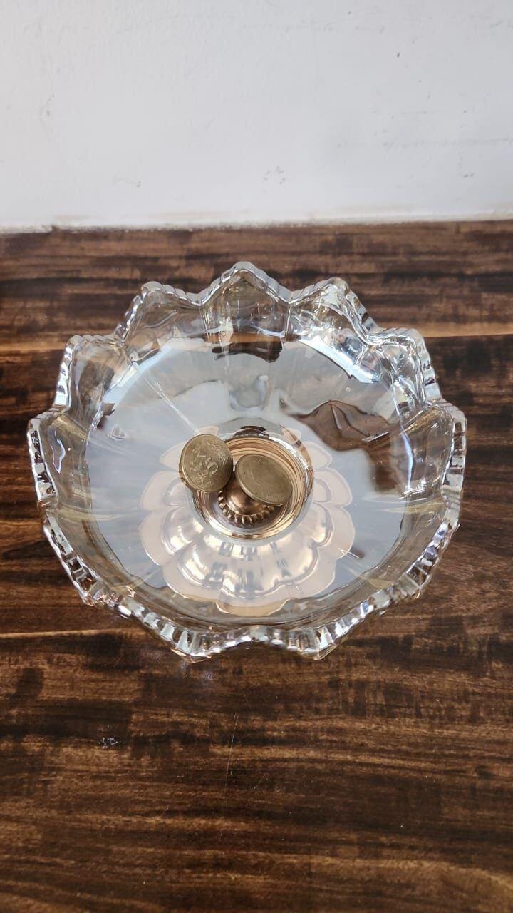 Crystal Glass Lotus Decorative Bowl With Stand Amber