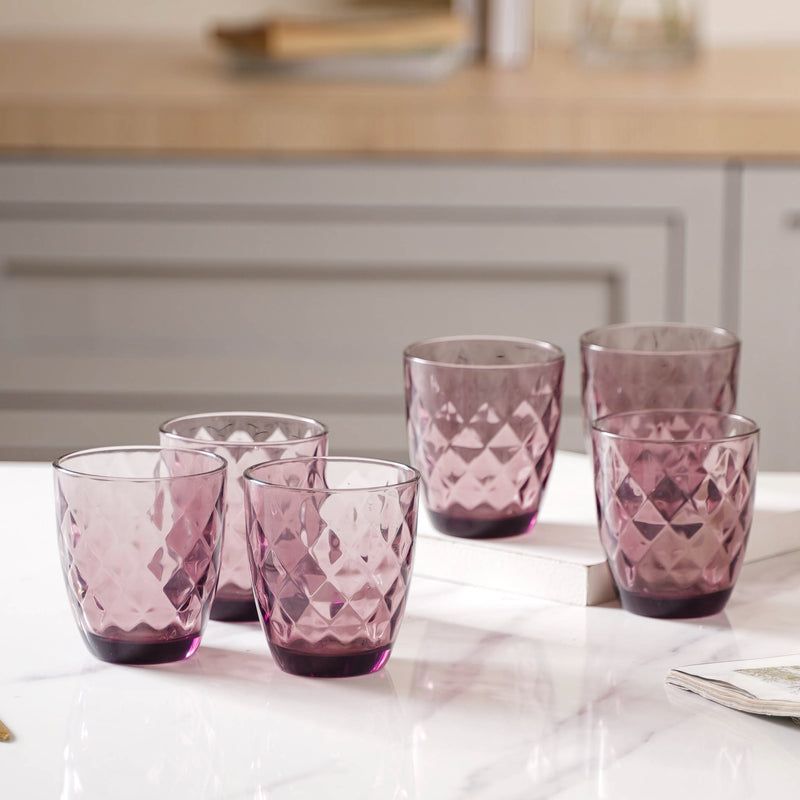 The elegant design glass set would feel great in the hand while sipping on refreshing drinks. The base of the drinkware is thoughtfully balanced to prevent tipping. The mauve orchid glassware provides an easy transition from everyday dining to elegant evening parties. The set of six glasses also makes a great gift for birthdays, anniversaries, weddings, celebrations, and more. Made of lead-free crystal glass, the water cups are durable, easy to use and clean up. Nestip: Match the drinkware with a matching jug to gift at housewarmings to friends and family. Size: 8cm diameter x 10cm H Color: Mauve orchid Material: Glass Products included: 1 set of 6 glasses of the same color and design Style: G03M21G55