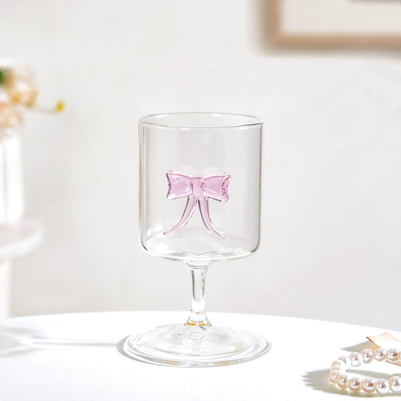 Crystal Pink Bow Borosilicate Wine Glass 250ml