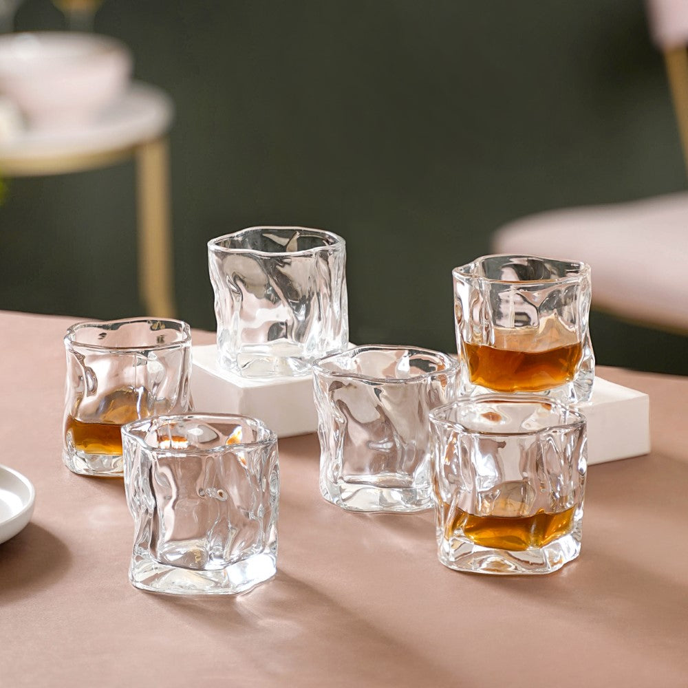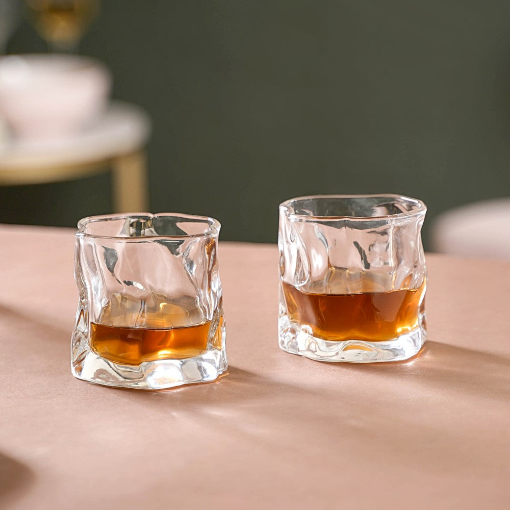 The abstract crystal glasses can be used for both alcoholic and non-alcoholic beverages because of its versatility. These glasses will improve your drinking experience whether you're serving cocktails, spirits, juices, water, or any other beverage of your choice.