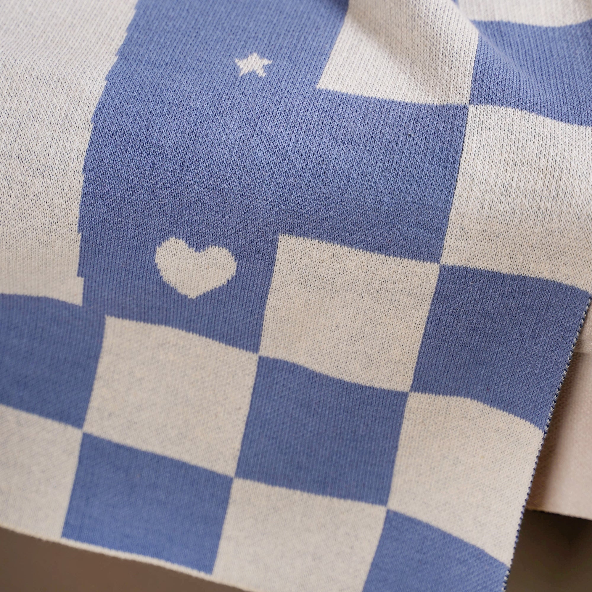 Design: This children’s throw blanket features a large central bear graphic surrounded by hearts and stars on a soft blue background. Made from breathable, natural, pure cotton, it ensures gentle comfort and warmth. The cream and blue checkered border adds a modern, coordinated finish. Its durable weave keeps the blanket long-lasting, while the lightweight fabric makes it easy to fold, carry, and store. Perfectly sized for a crib, toddler bed, or stroller, it creates a cheerful and comforting space for rest or play.