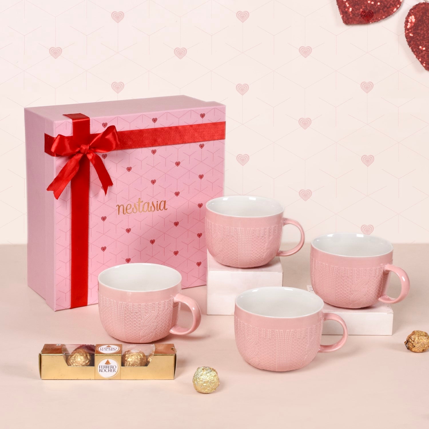 Embark on a journey of love this Valentine's Day with our enchanting gift hamper set. Within the curated collection, discover four stunning pink ceramic cappuccino mugs, each a testament to your affection. Paired with a sumptuous pack of artisanal chocolates, this gift set promises to elevate your romantic moments. Presented in a charming designer gift box, the allure of this thoughtfully arranged hamper extends beyond its contents - it's an expression of your deepest emotions. Unwrap the magic of togetherness with this exquisite combination of stylish coffee mugs, decadent chocolates, and a meticulously crafted gift box, making this Valentine's truly unforgettable.