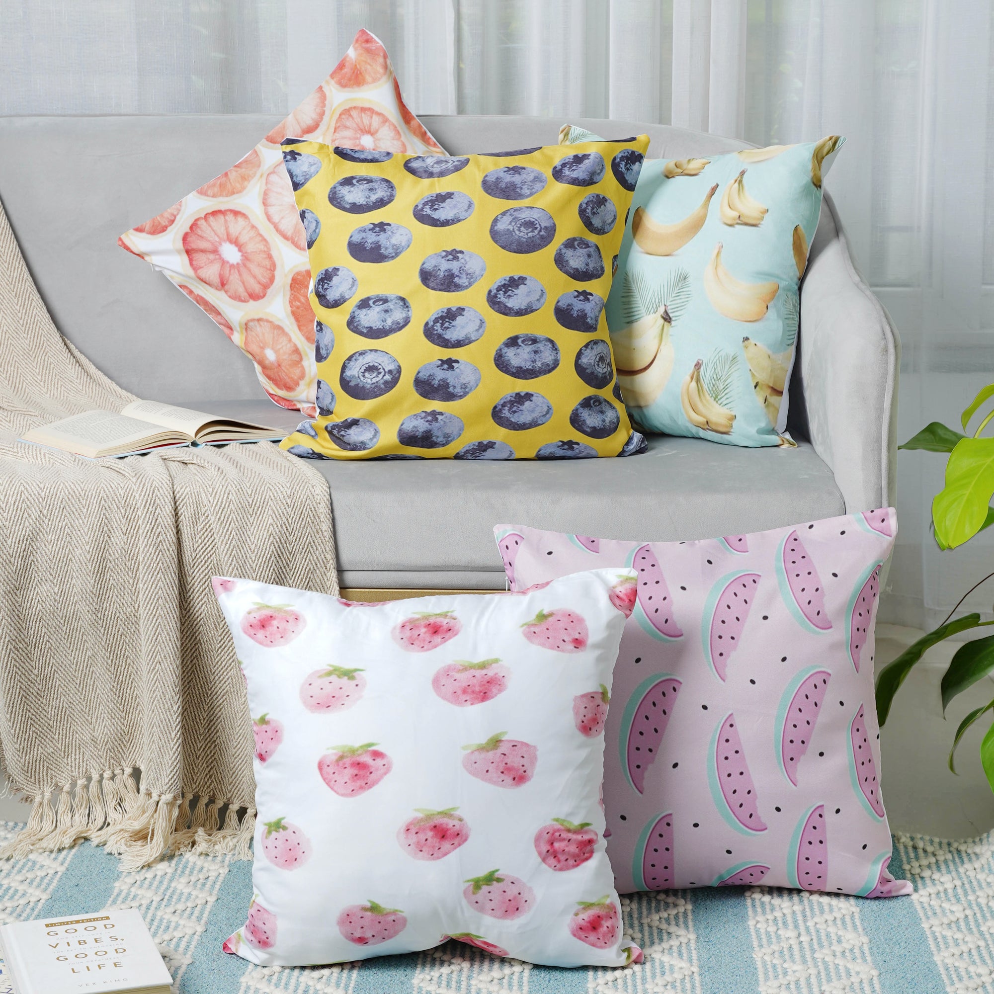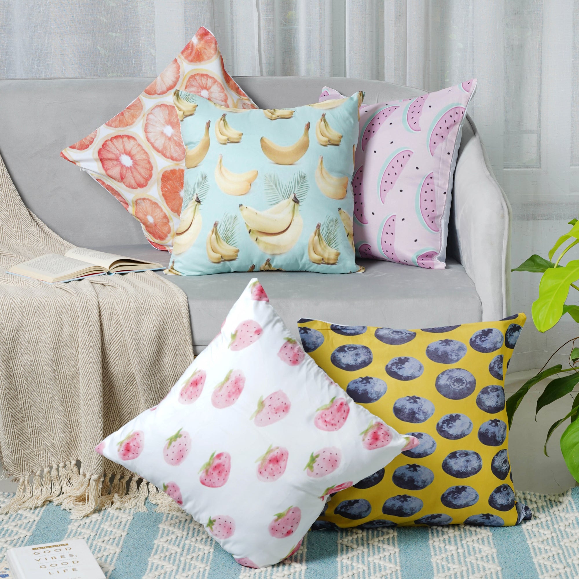 Make the living room decor into a fruity affair using the fruit cushion covers which come in a set of 5. Each cushion cover is sturdy and made of excellent quality material. The designs vary from prints of bananas to strawberries. Each cushion cover comes with a sturdy hidden zip. The quirky designs are one of a kind and a must have to brighten up monotonous decor settings, be it in the car, balcony, patio or bedroom.