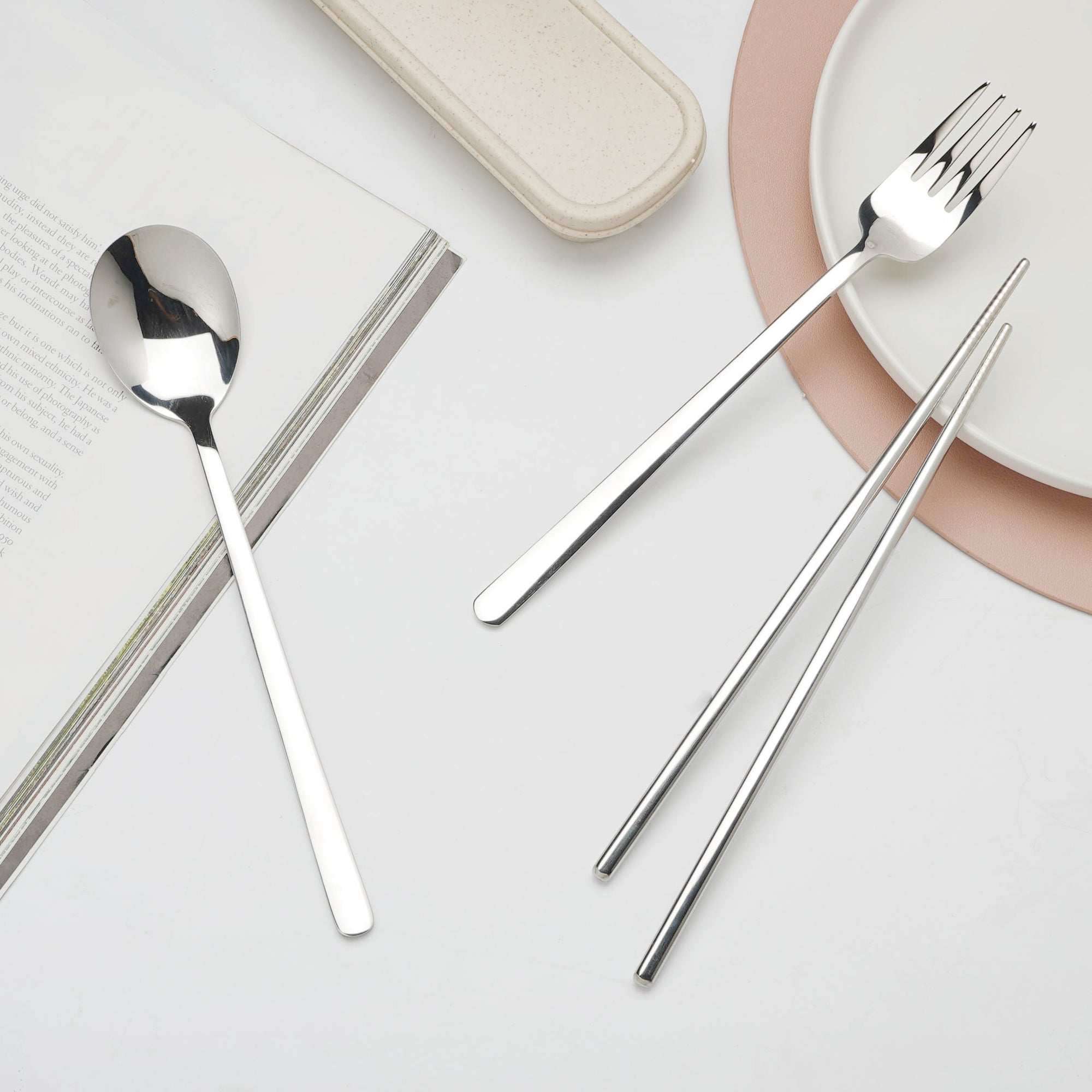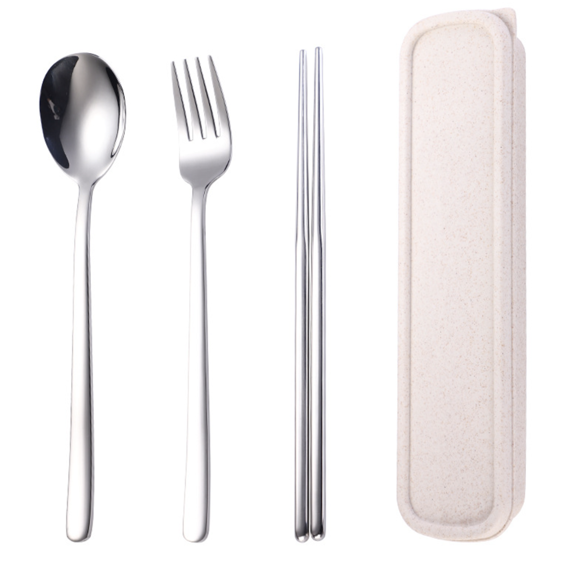 Products included: 1 spoon, 1 fork and a pair of chopsticks in one set with a storage box