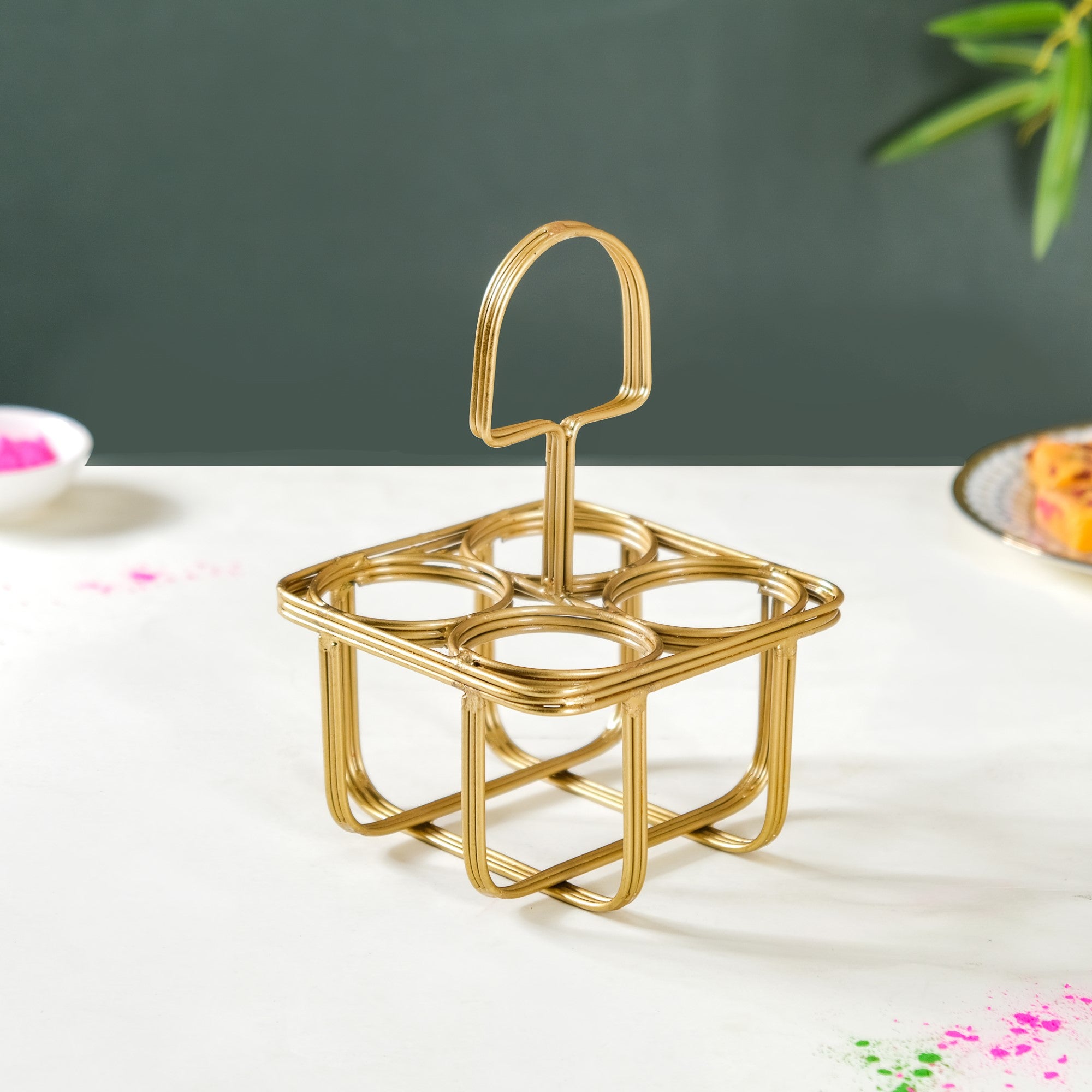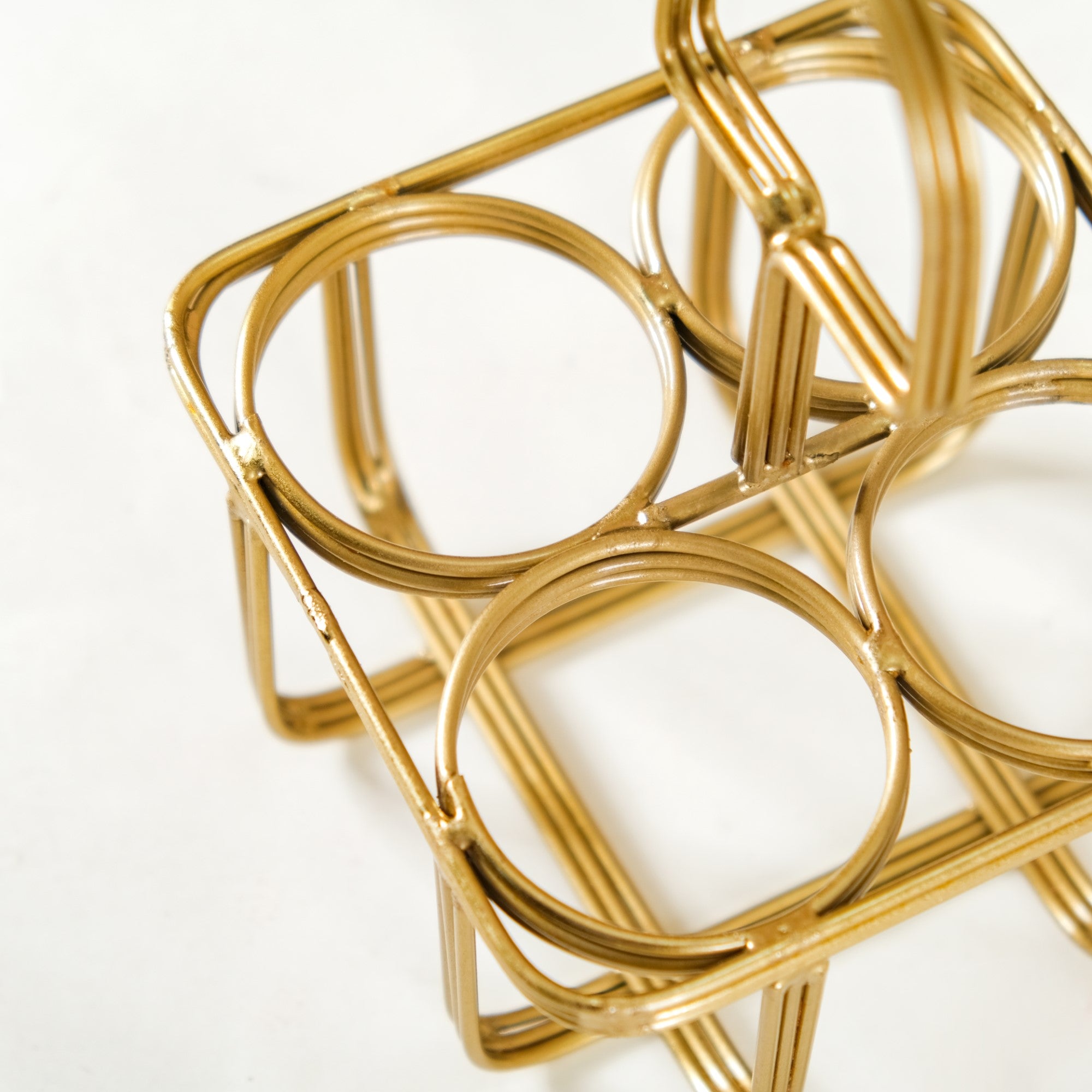 Yes, the metal stand included in this set is constructed from wrought iron, ensuring durability and rust resistance, making it a reliable choice for holding the glass tumblers securely.