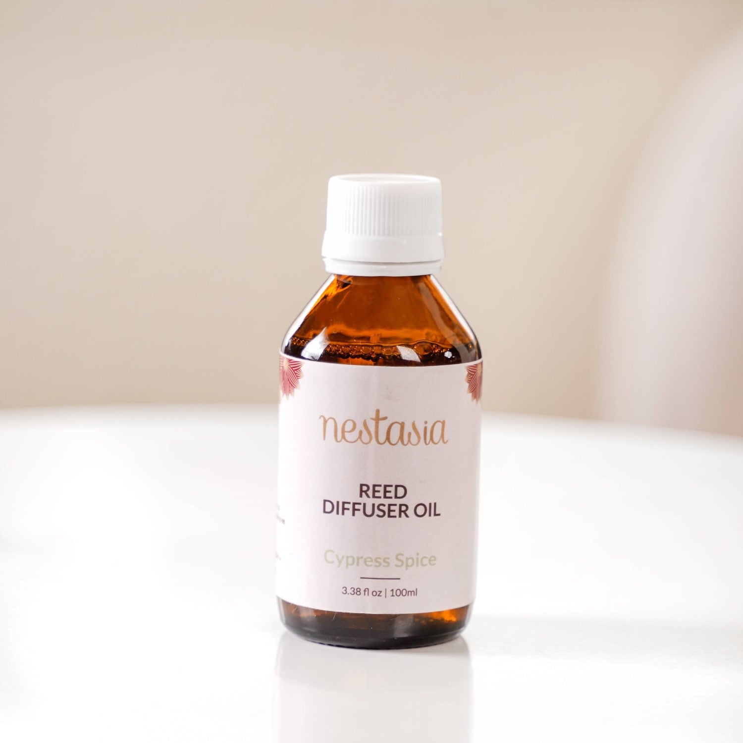 Benefits: Handcrafted from organic and non-toxic materials, this fragrant reed diffuser promotes a serene atmosphere through the art of aromatherapy. The diffuser's scent, Cypress Spice, combines the calming essence of frankincense, the relaxation of lavender, and the warm spice of nutmeg, making it perfect for moments when you need to unwind.