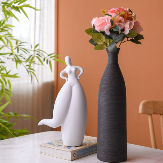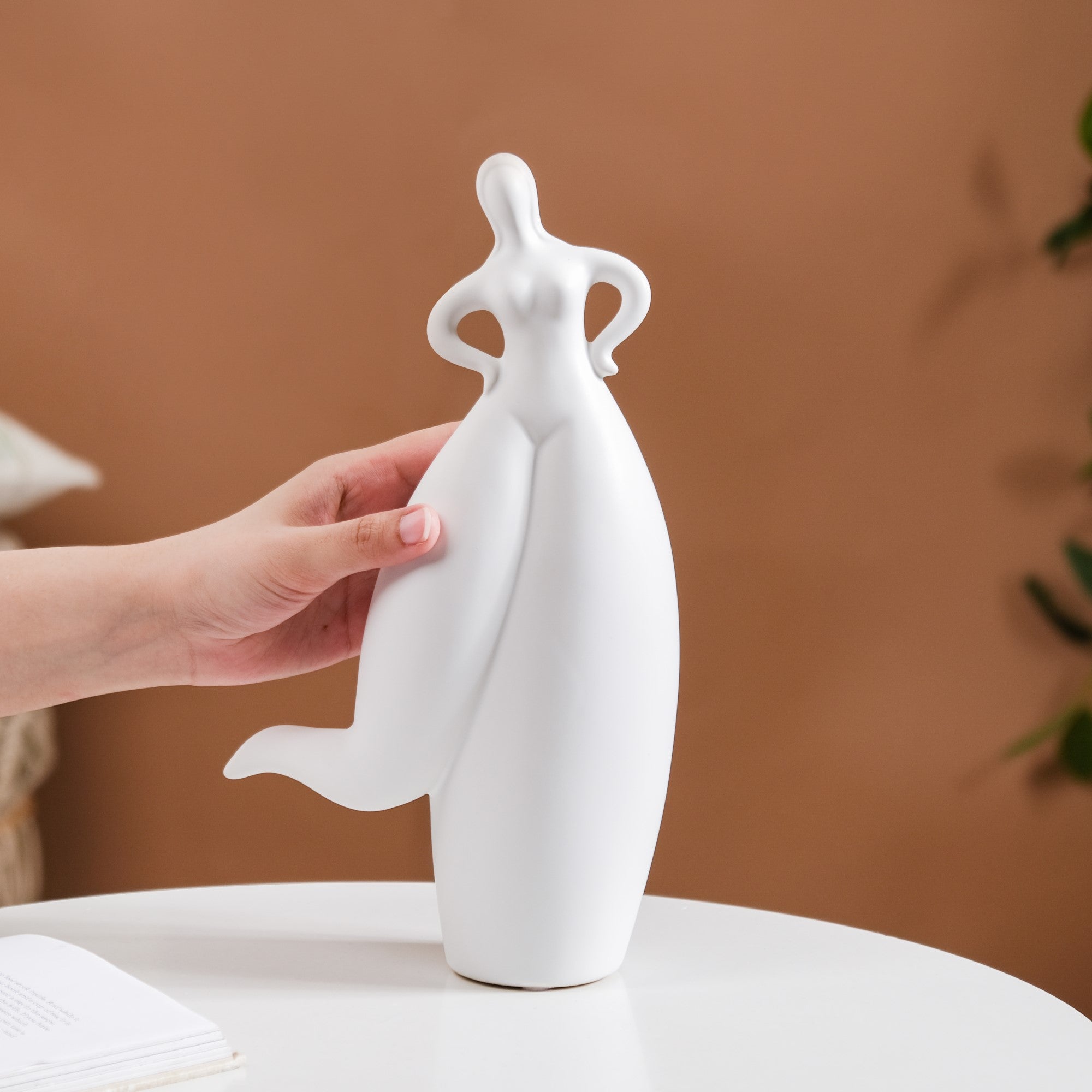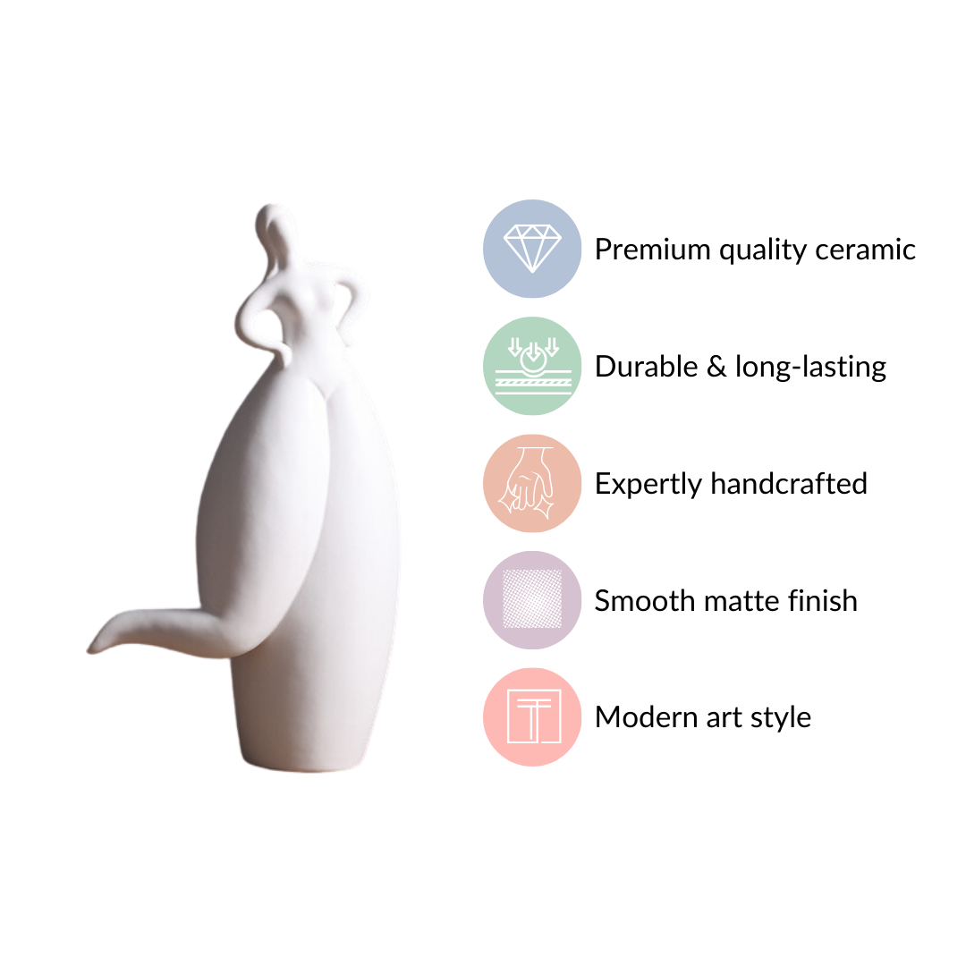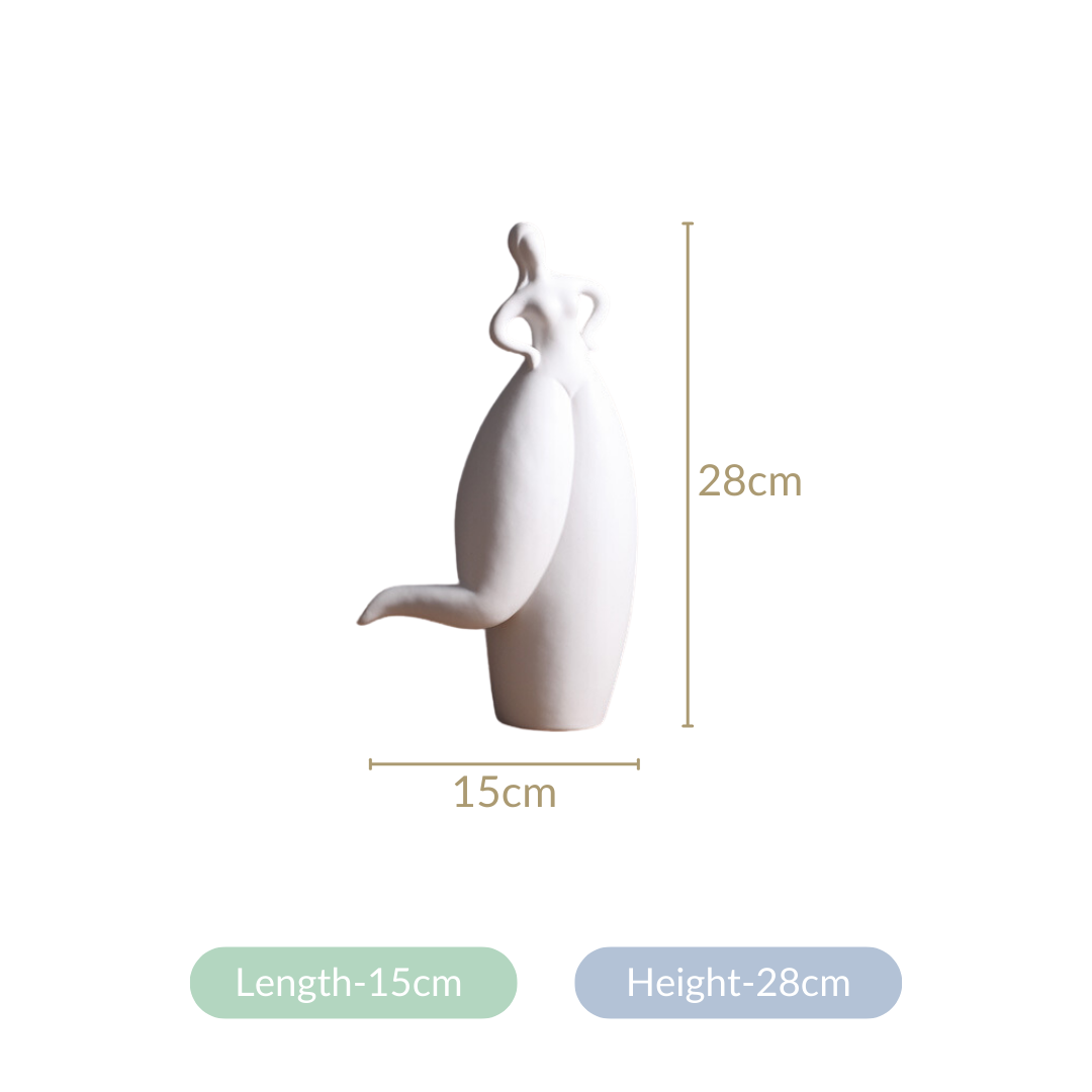 Discover our exquisite Dancing Girl showpiece, a true testament to premium craftsmanship and contemporary elegance. Expertly handcrafted by skilled artisans, this modern decor sculpture boasts a smooth matte finish that accentuates its artful style. Its stable base is equipped with anti-skid foam pads, ensuring both balance and safety. Crafted from top-notch ceramic, this home decor gem not only delights the eye but also promises enduring durability. Maintenance is a breeze, making it an ideal choice to elevate your decor with both artistry and sophistication in perfect harmony. Experience the seamless blend of form and function with our ceramic showpiece for your living room decor.