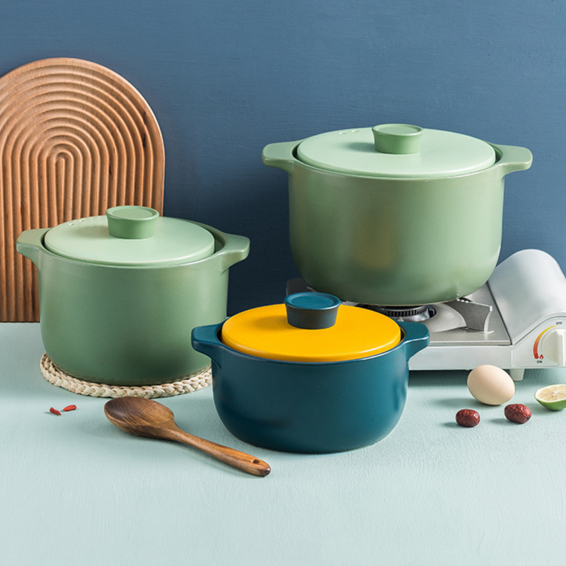 Cooking pots that set everyone thinking about what you cannot cook in them! The traditional ceramic cooking pot is given a modern touch with its sophisticated green hue and is hand-built from good-quality ceramic clay fired to provide strength and durability. The non-porous ceramic material of the pot allows uniform heating and cooking of the food, whether it is lentils, curries, rice, or biriyani that one is cooking. The flame-friendly pot with lid and handle helps circumvent the cooking process that preserves rich nutritional quotient from pulses, grains, and vegetables while cooking. The adorable and gorgeous casserole is also perfect for cooking and serving directly on the table to guests and family members. Guests will love the pot's cute size and the fun looks of the dark green pot. Since the pot is topped with a lid, one can also use it for heating snacks in the microwave oven and making them look fresh and delectable.