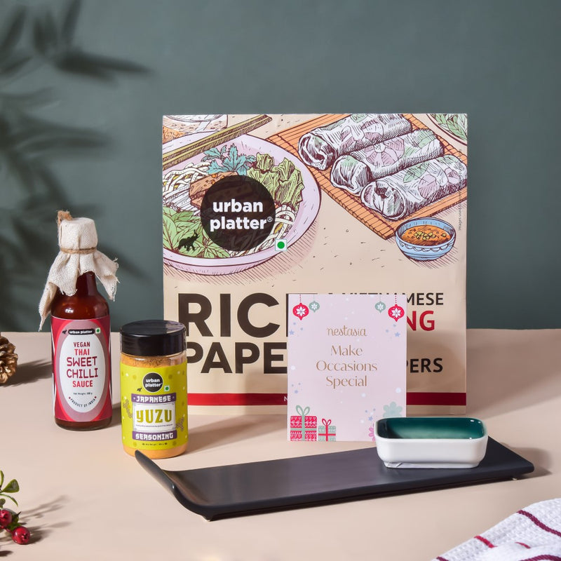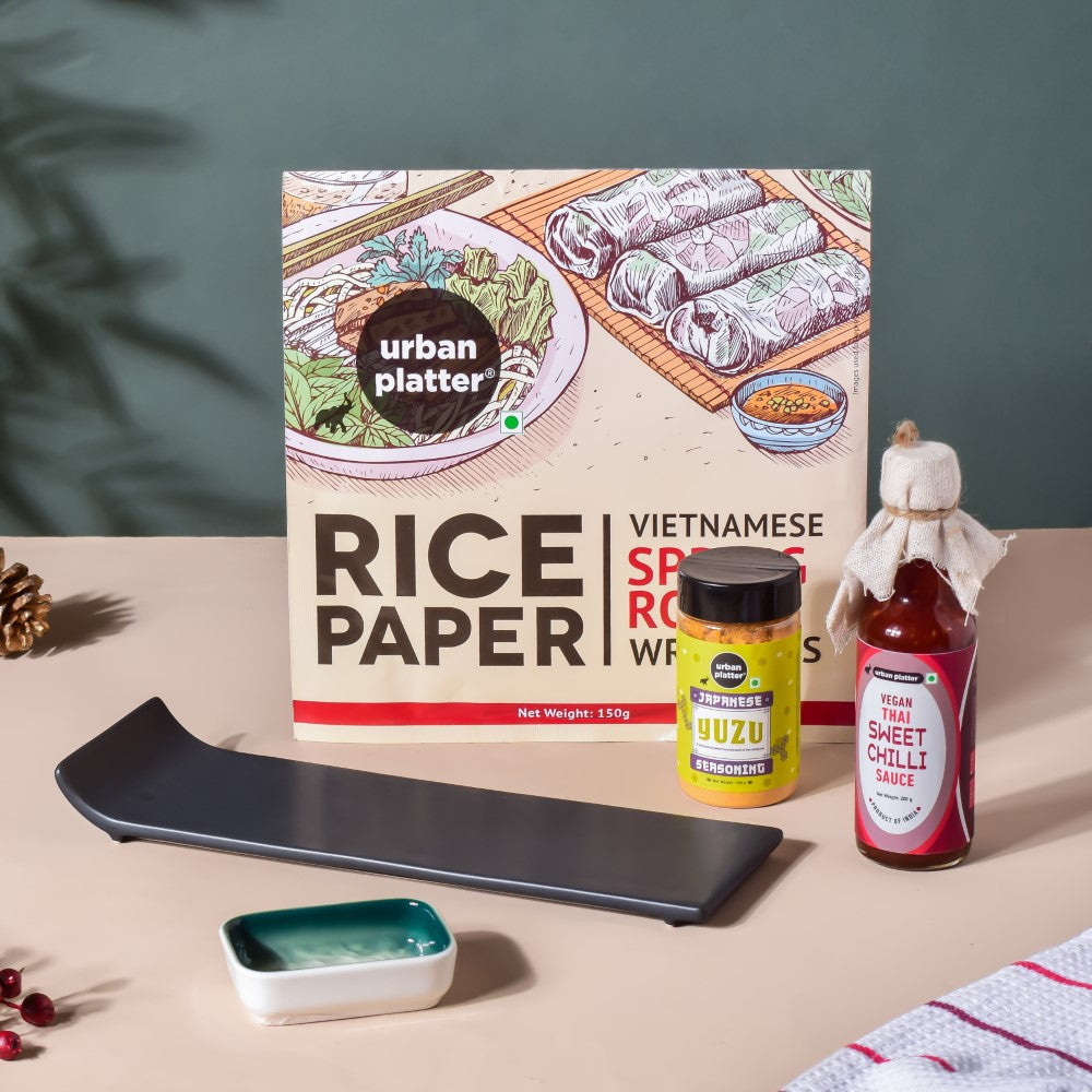 The Urban Platter's sweet chilli sauce and spring roll wrappers will undoubtedly be your two best friends while presenting the perfect sushi on the black platter.