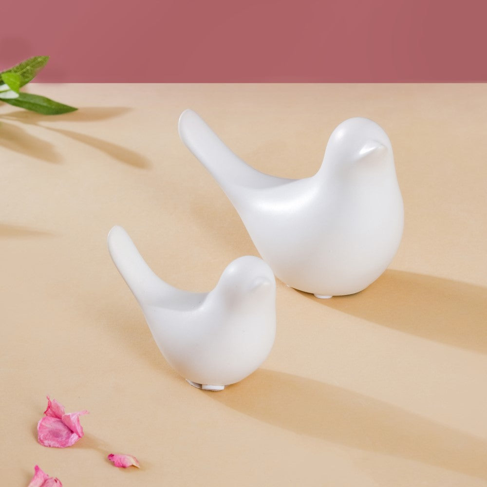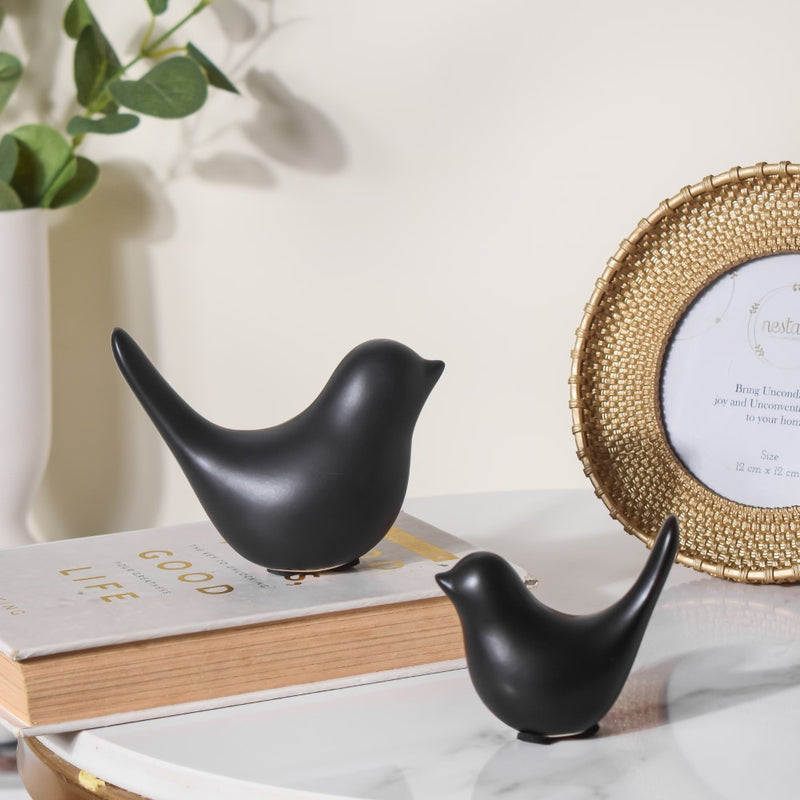 Decor birds in black and white that can add a vibe of nature with their chirp in any living space. The birds made in ceramic can be paired and placed anywhere as a decor accent. The show piece can add an element of interest in a space and help uplift a plain simple look to a vibrant and elegant one.