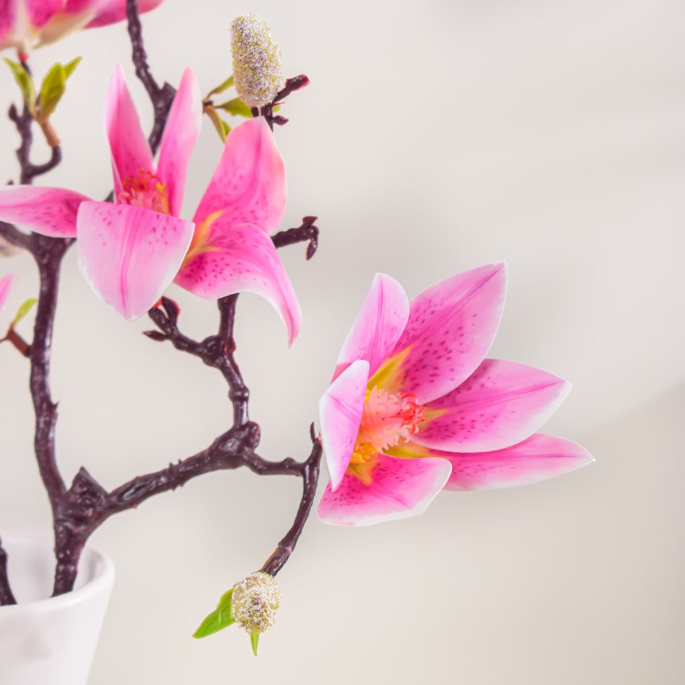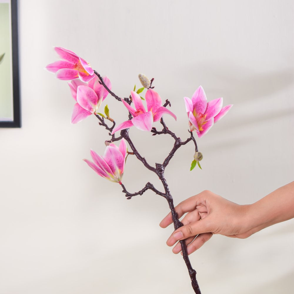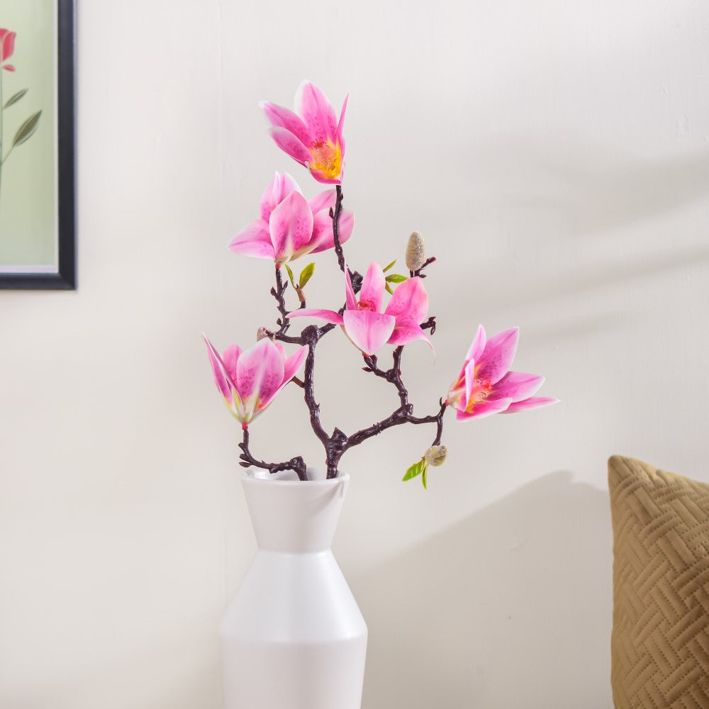 The delightful stem of beautifully blooming lilies is surely crafted to bring a smile to the faces of all flower curators. Made of premium quality material, the pink and white blooming lily flowers are patterned like natural ones to deliver a piece of nature at your entrance, or in your living room. The artificial stem is sturdy and can be placed in a tall vase to be adorned at a housewarming party or a festive setup.