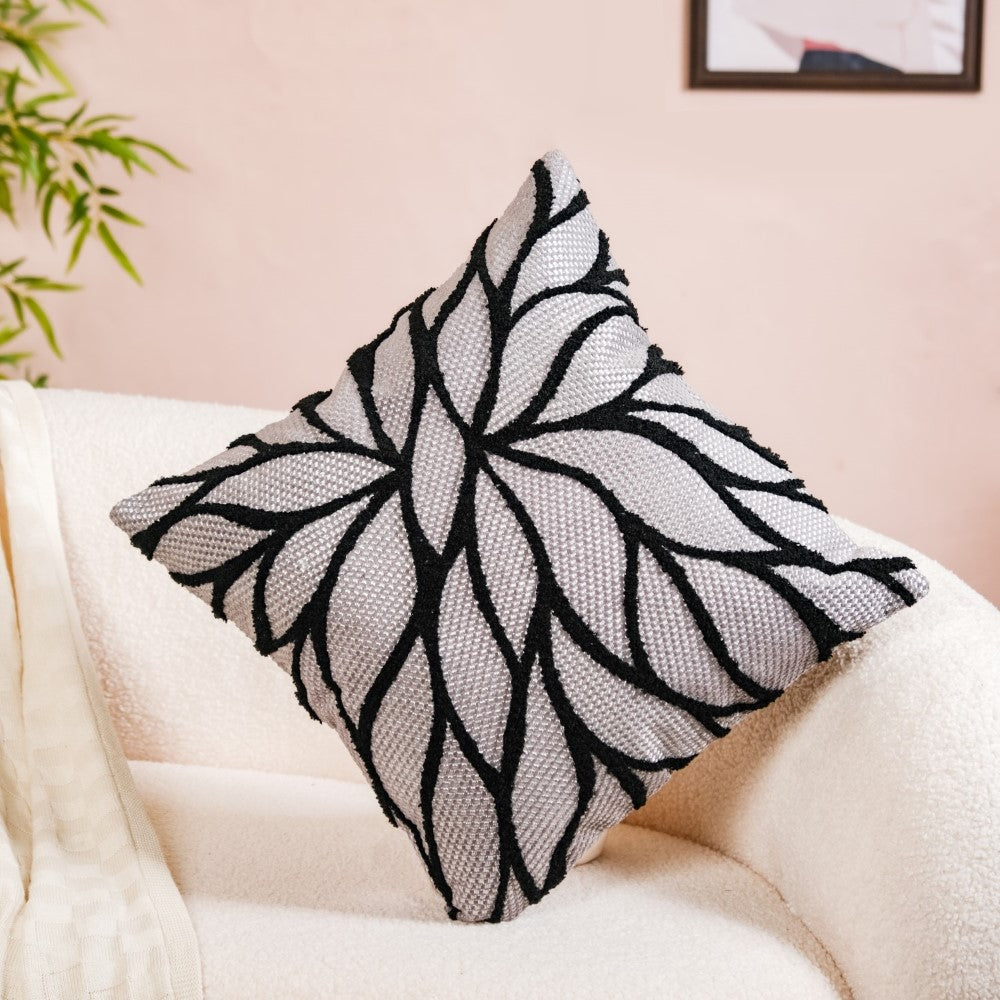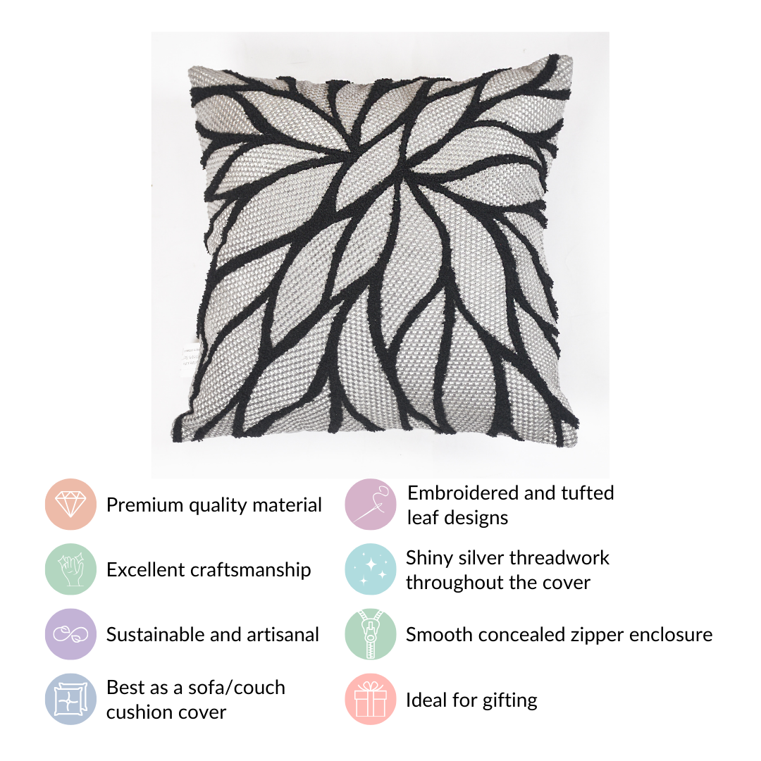 This cushion cover stands out due to its meticulous craftsmanship, showcasing intricate leaf-shaped patterns that elevate its visual appeal. The use of premium quality cotton, combined with the smooth-concealed zipper, ensures both aesthetic appeal and practical functionality, setting it apart from standard cushion covers.