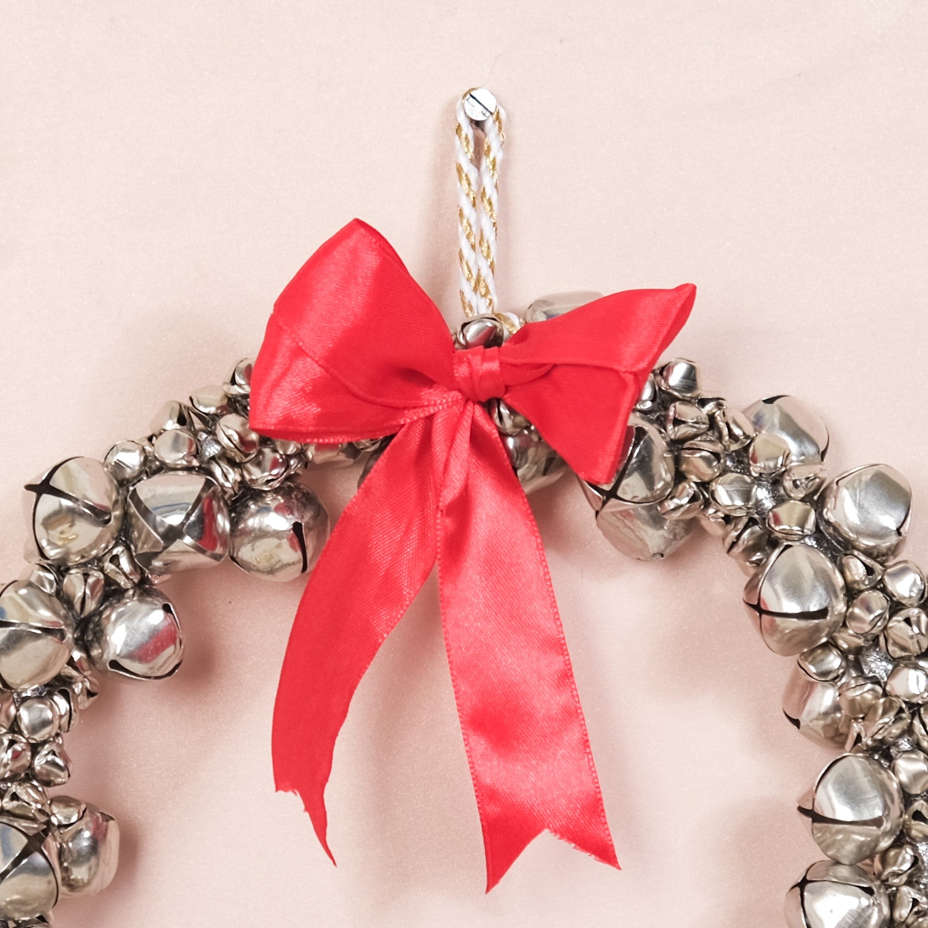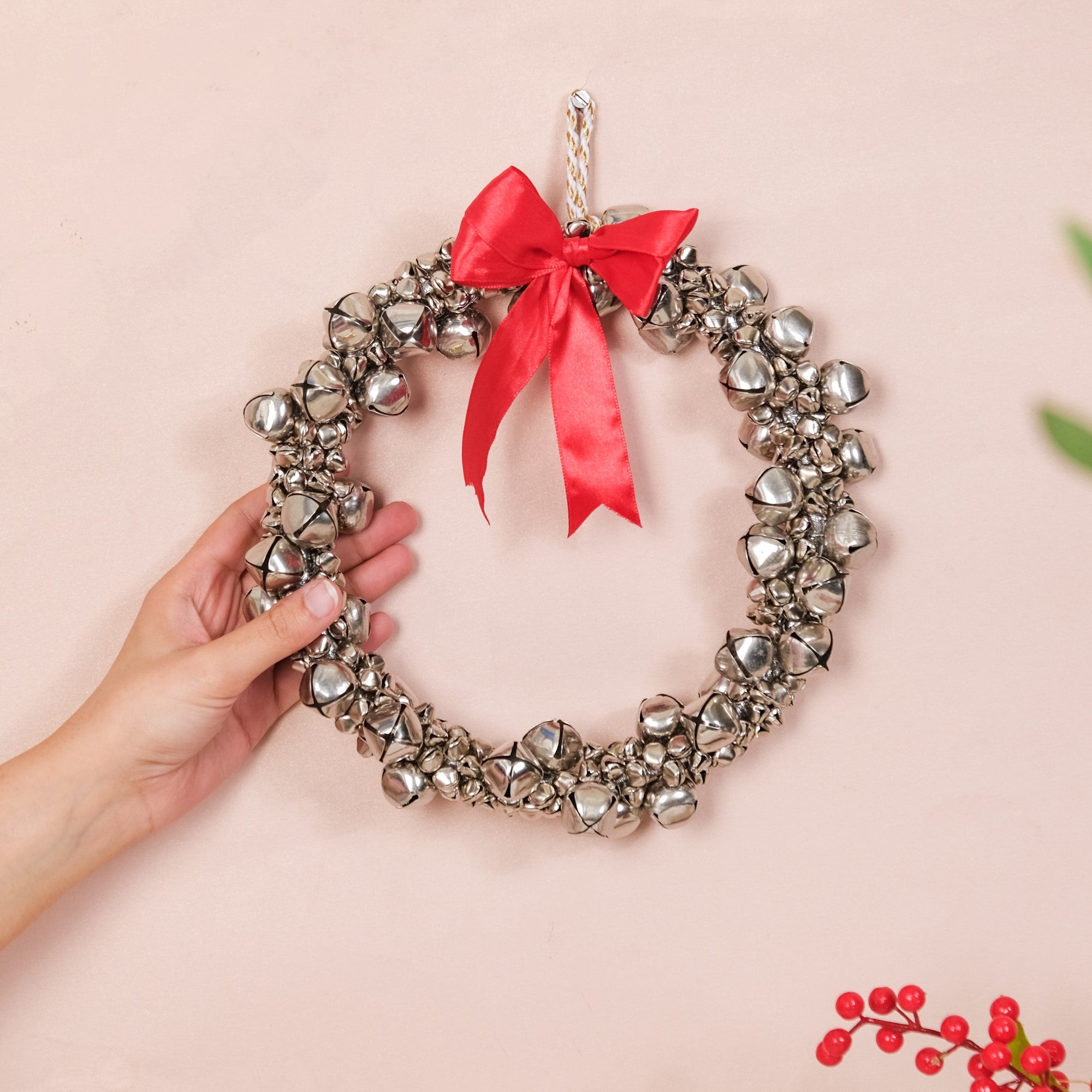 The silver wreath is versatile and can be used as a stunning table centrepiece. Its elegant design, adorned with shimmering silver bells, adds a touch of festive grandeur to any tabletop.