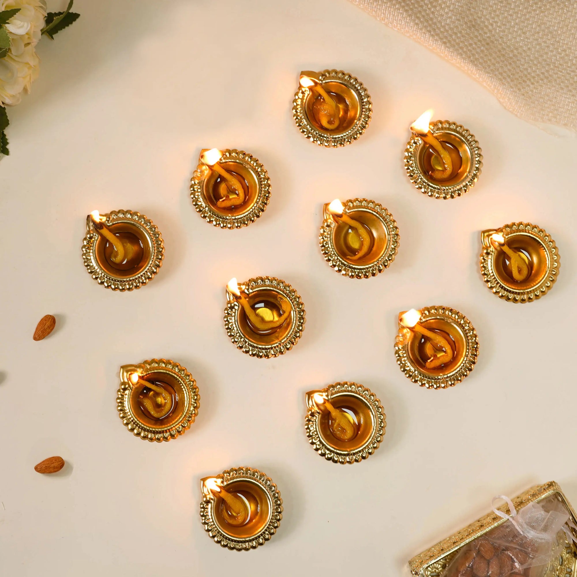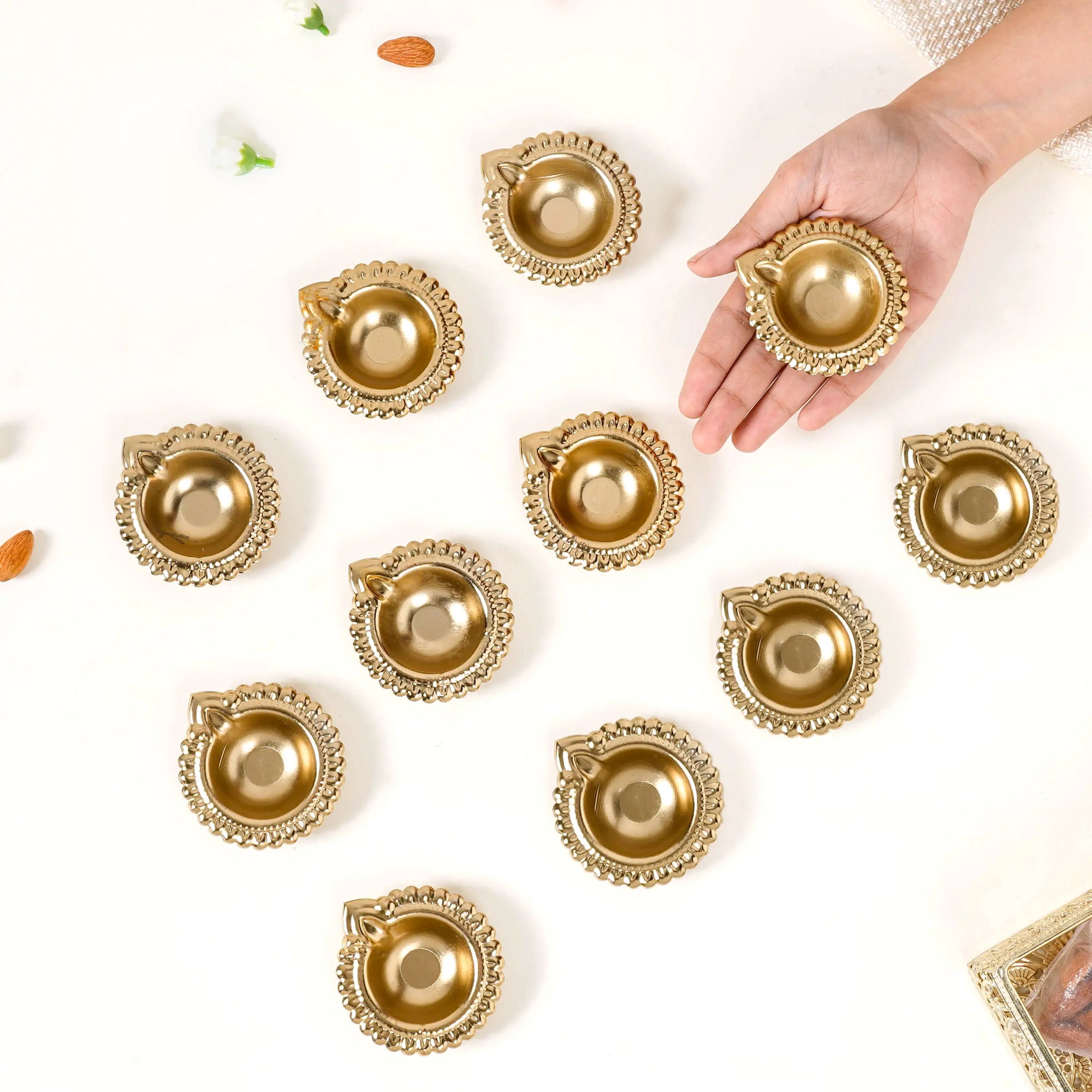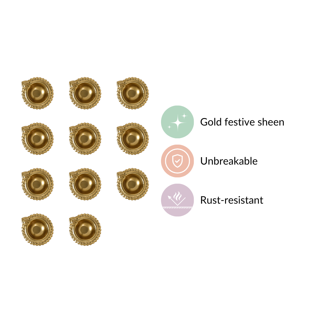 Our Tea Light Holders are crafted from high-quality materials that ensure durability and longevity. The traditional and intricate design adds an element of elegance to your decor, making them stand out as premium pieces. These holders are designed to safely hold LED tea lights, providing a safe and long-lasting lighting solution. The high-sheen gold finish not only enhances their visual appeal but also adds a touch of luxury to any setting.