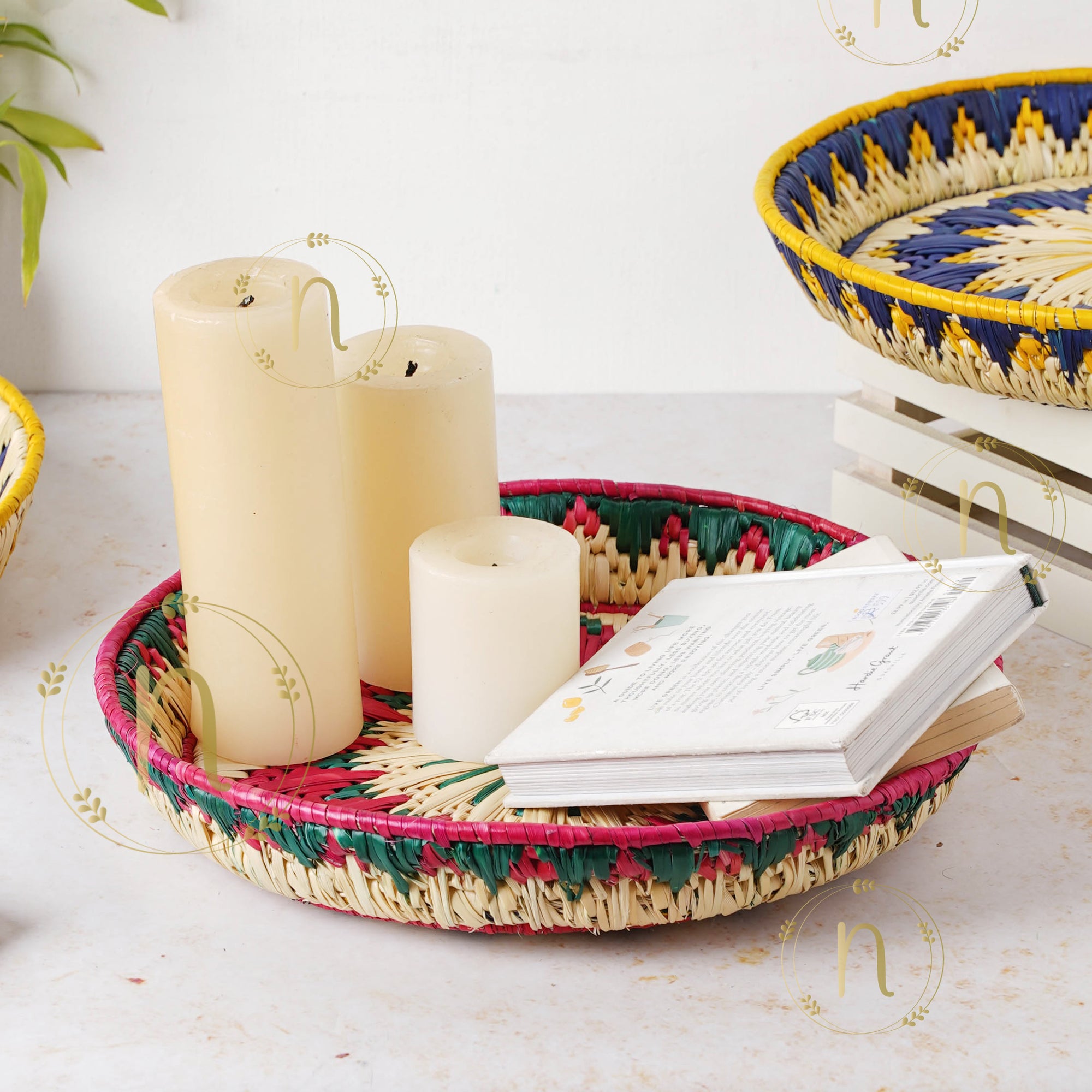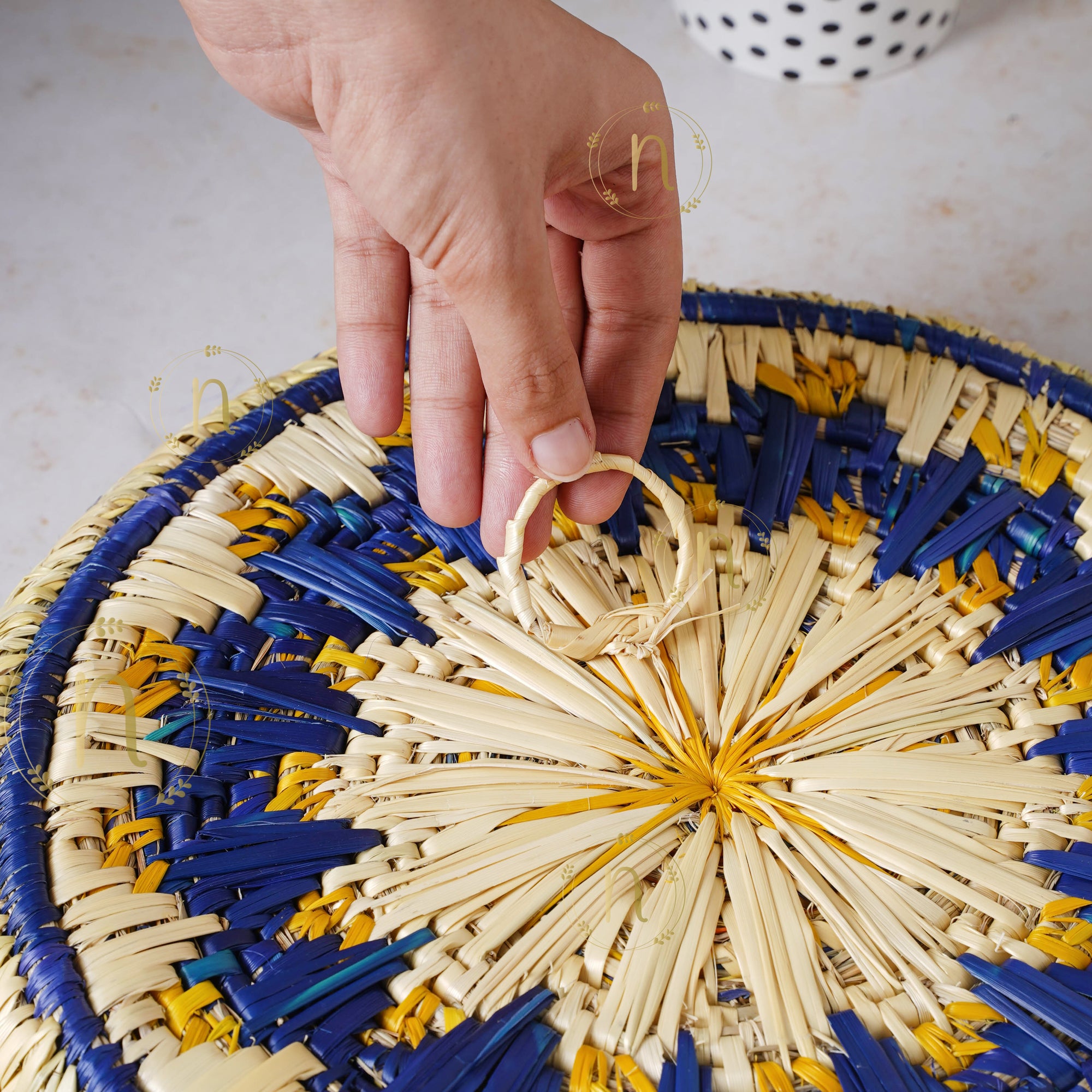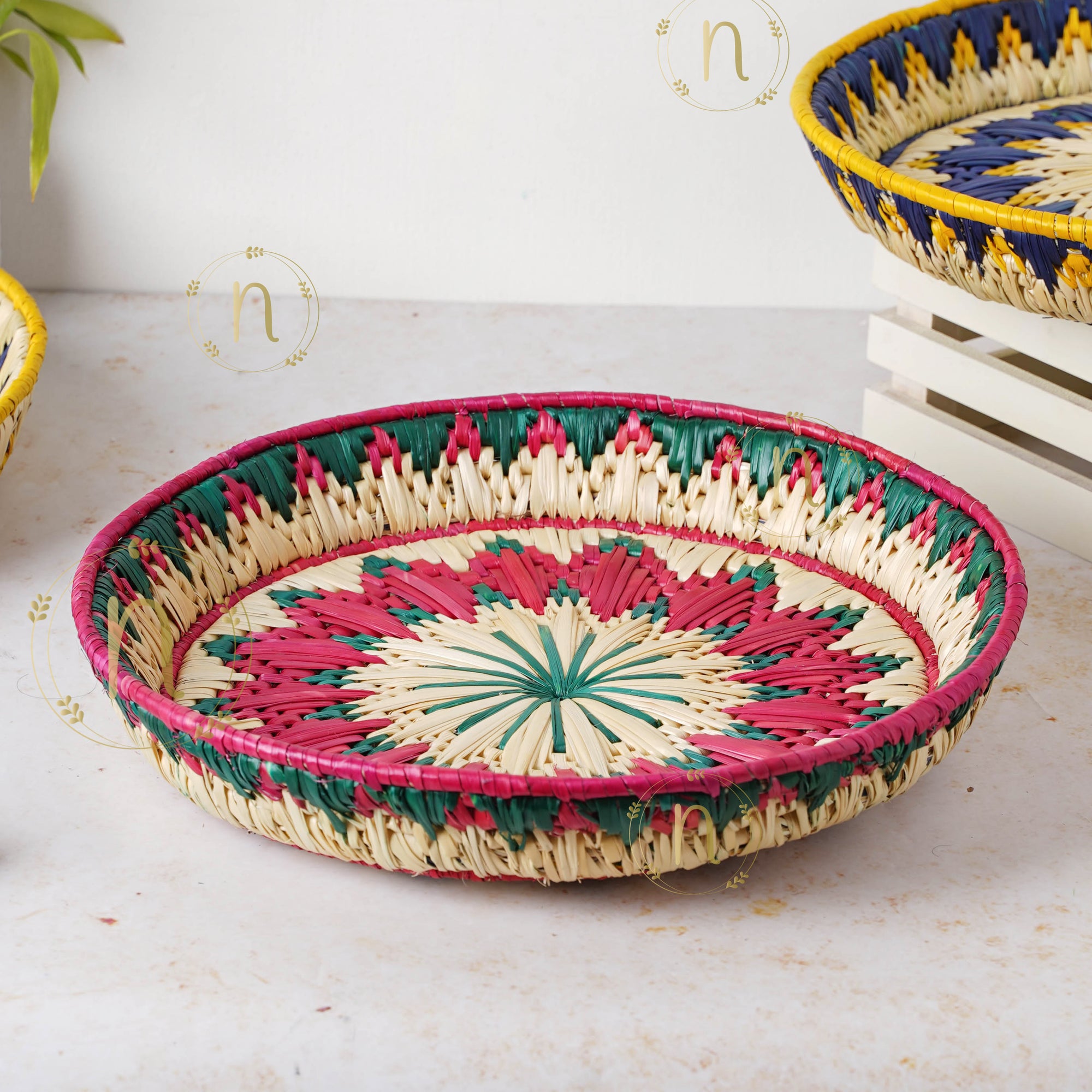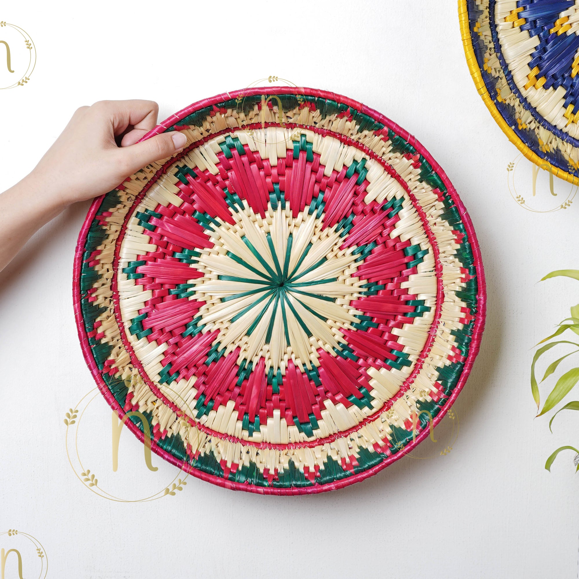 Handwoven with care, the Moonj wall hanging comes in 3 exciting colors. For an eco-friendly decor change, opt for the handmade product which give off a bohemian vibe. The intricate design with the mandala floral pattern adds to its already colorful aesthetic. The handwoven moonj wall plate can also be used as a tray to keep fruits and vegetables. The wall decorator is sure to bring a pop of color and enliven the room settings with the cheerful, vibrant vibe that it gives off.