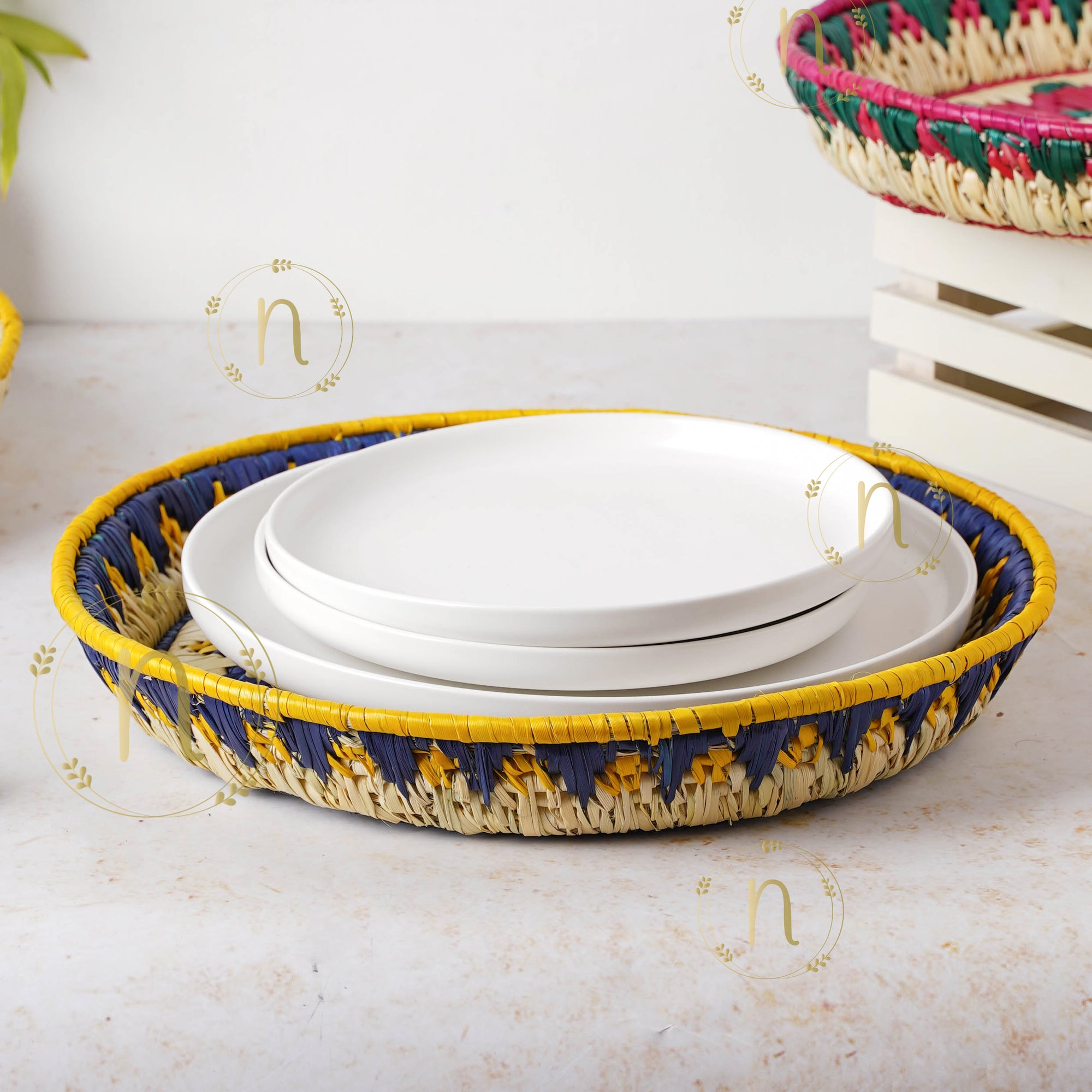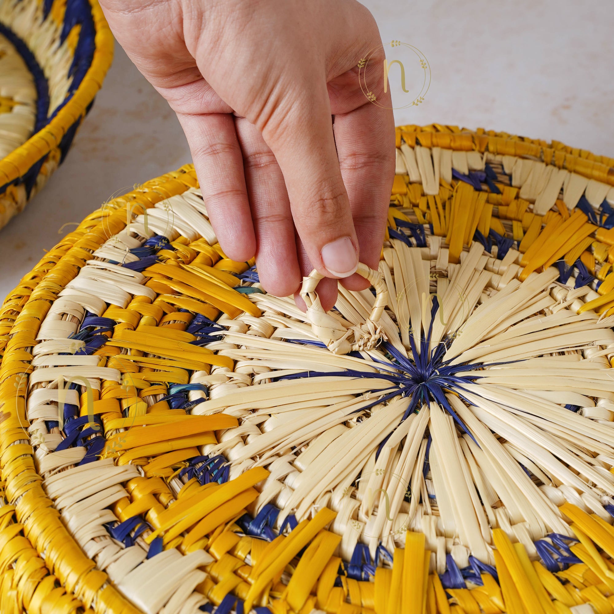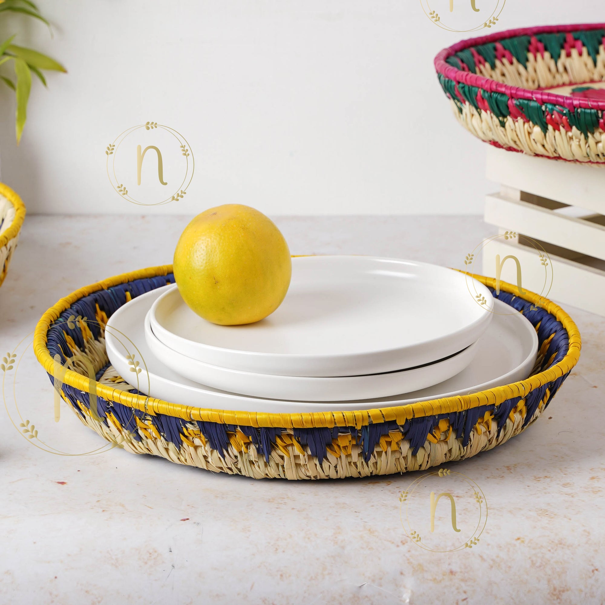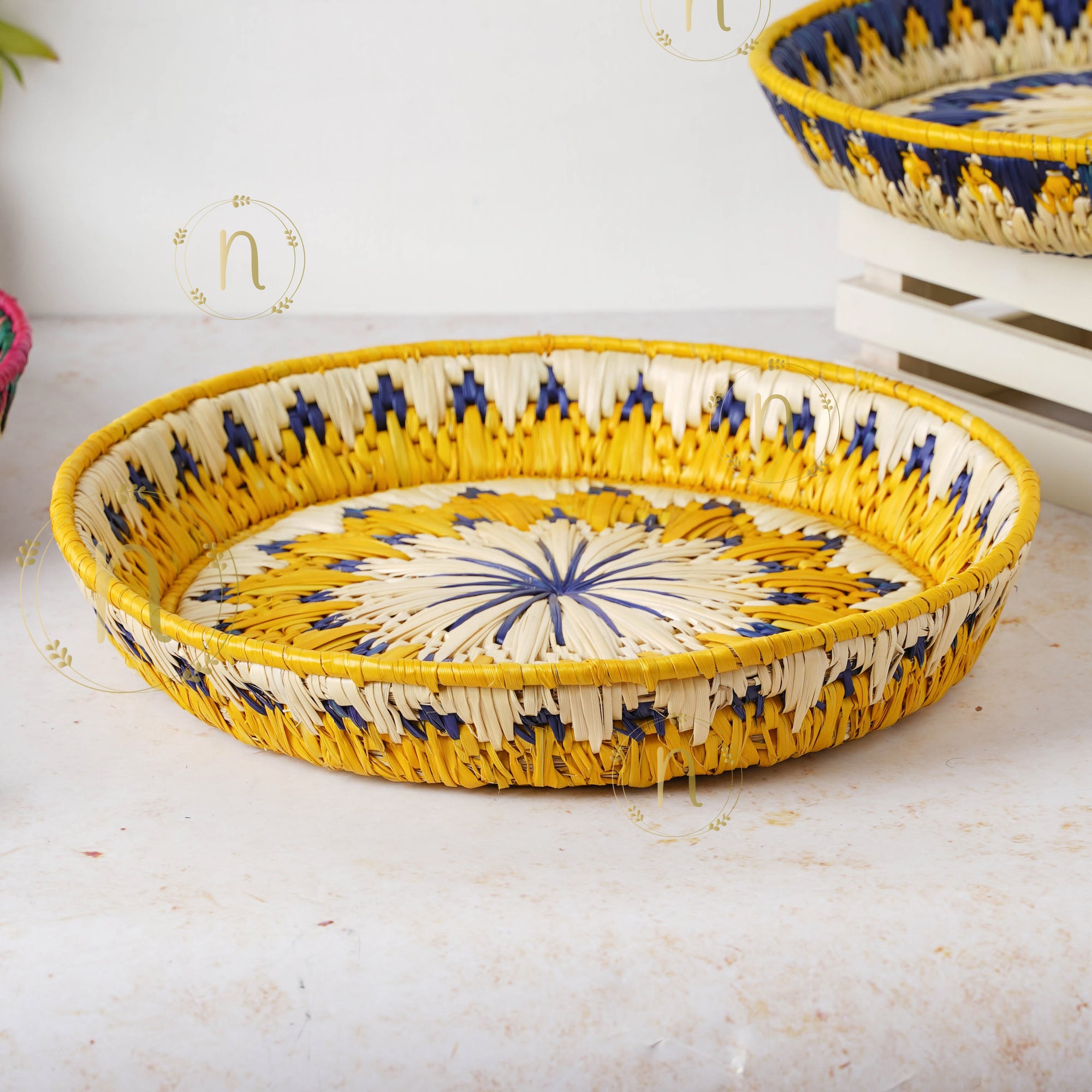 Handwoven with care, the Moonj wall hanging comes in 3 exciting colors. For an eco-friendly decor change, opt for the handmade product which give off a bohemian vibe. The intricate design with the mandala floral pattern adds to its already colorful aesthetic. The handwoven moonj wall plate can also be used as a tray to keep fruits and vegetables. The wall decorator is sure to bring a pop of color and enliven the room settings with the cheerful, vibrant vibe that it gives off.