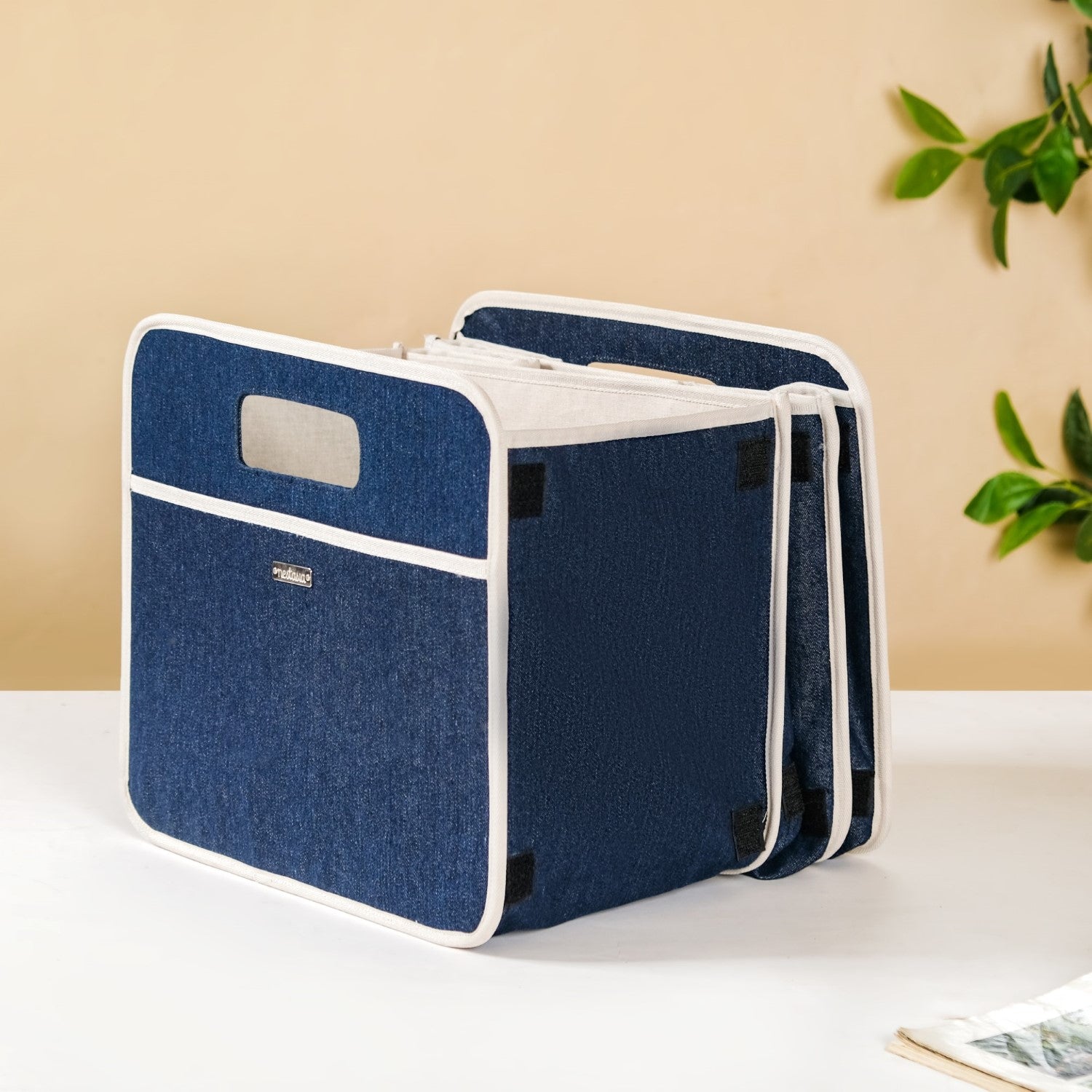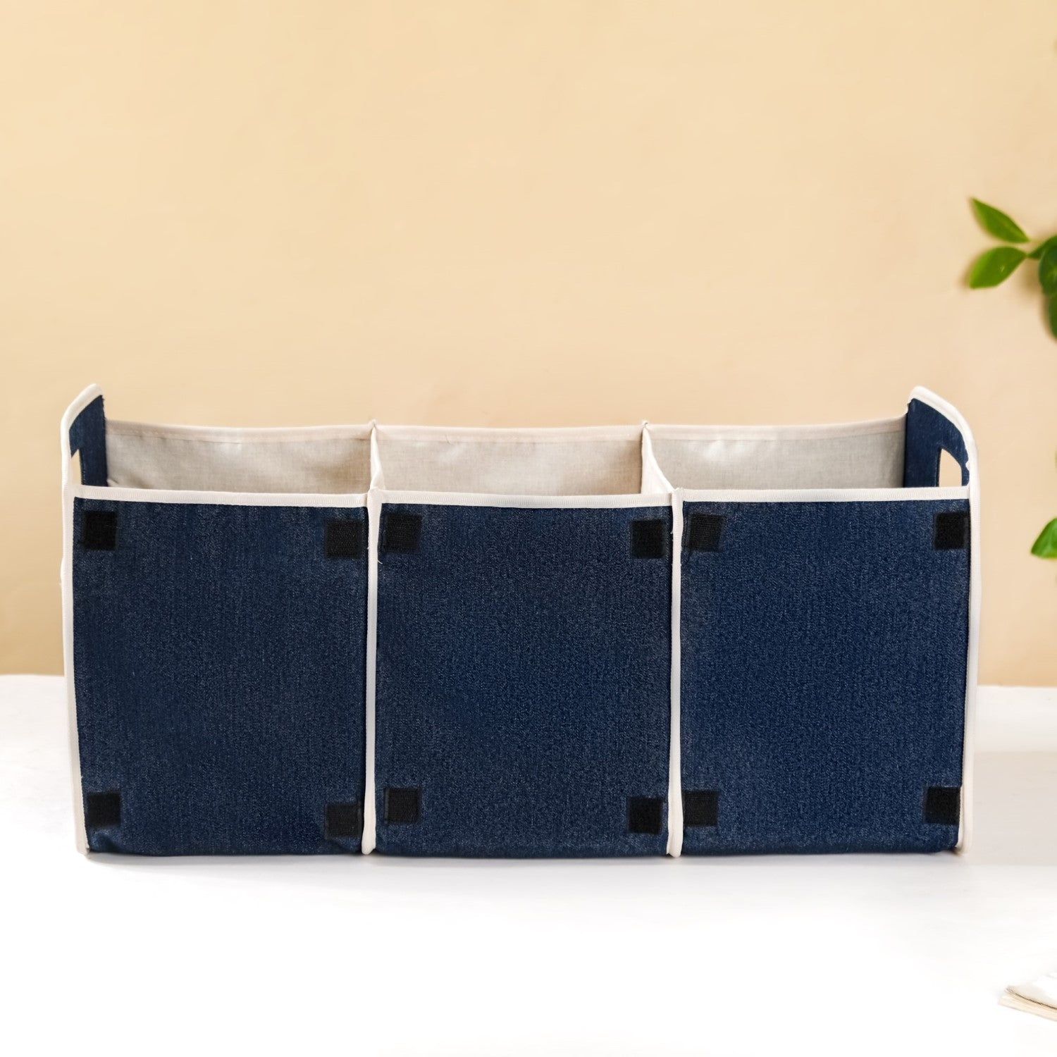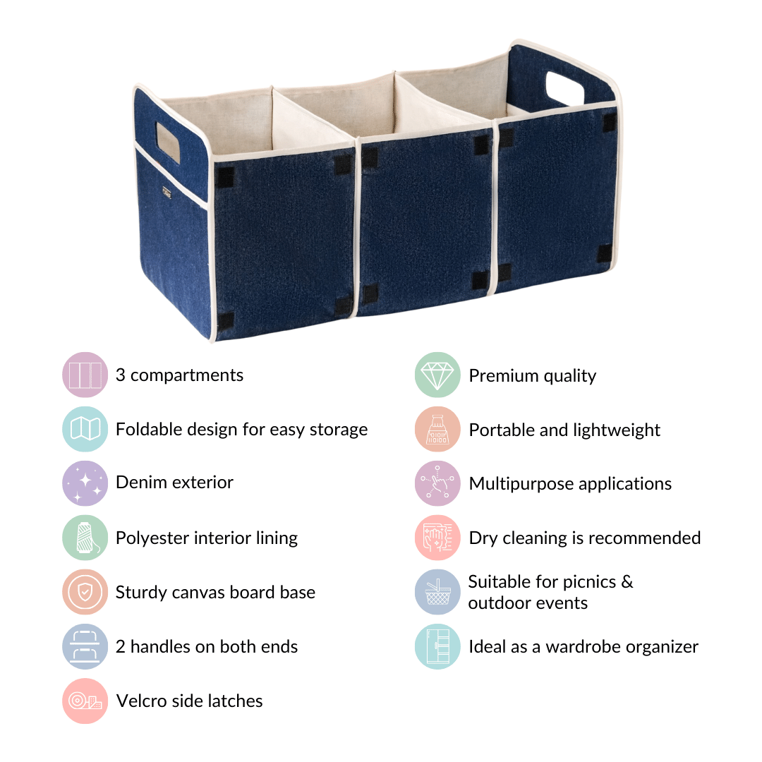The triple-compartment picnic basket has a foldable design, allowing you to neatly fold the basket for storage and easy transport. The basket comes with velcro side latches, allowing you to secure the folds in place when you decide to fold it for storage or outings.
