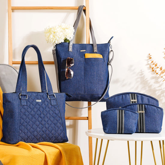 By taking into account it's aesthetic and styling, our denim tote bag can be appropriate for both informal and professional settings. You can pair it in a business setting with tailored trousers, blouses, and blazers or in an informal setting with jeans, t-shirts, and sneakers. Our quilted denim tote bag can look good in a variety of scenarios with the appropriate styling.