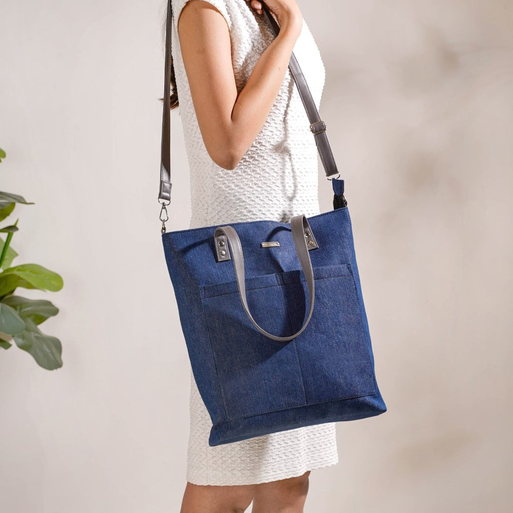 By taking into account it's aesthetic and styling, our denim tote bag can be appropriate for both informal and professional settings. You can pair it in a business setting with tailored trousers, blouses, and blazers or in an informal setting with jeans, t-shirts, and sneakers. Our quilted denim tote bag can look good in a variety of scenarios with the appropriate styling.