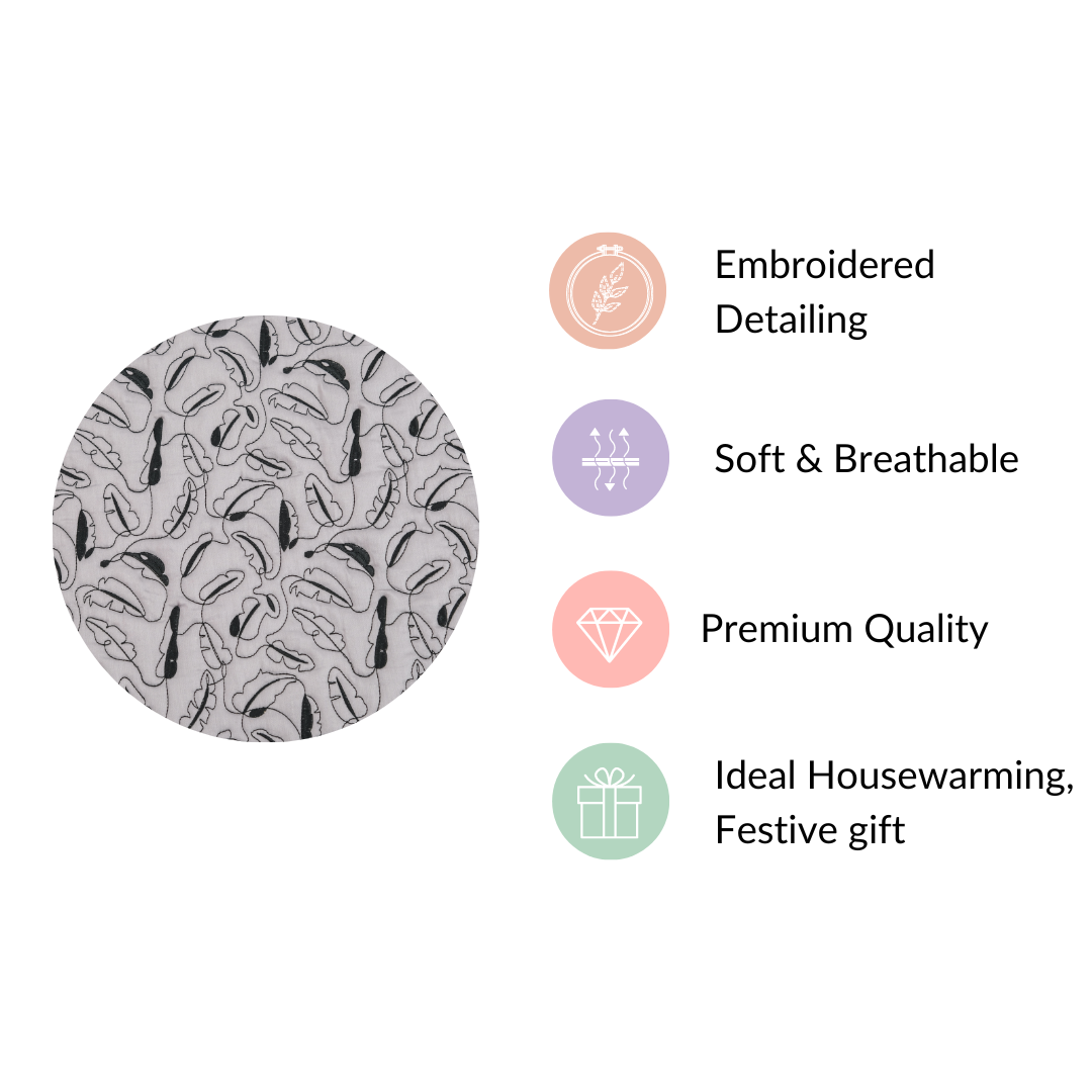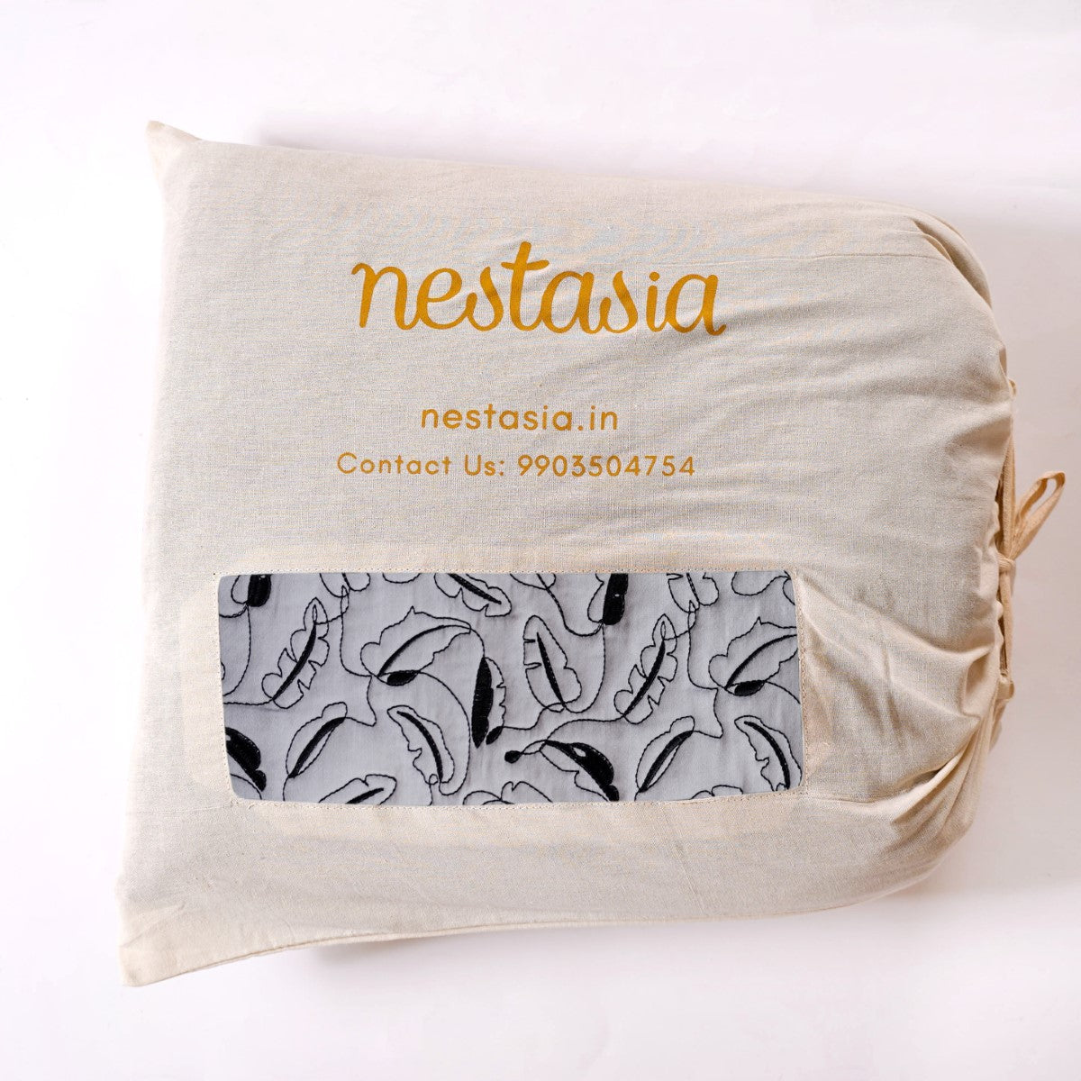 To maintain the embroidered leaf patterns' longevity, avoid sharp objects and be gentle when handling them. Avoid washing it in a washing machine, instead handwash the bedcover set with cold water or dry clean it if required.