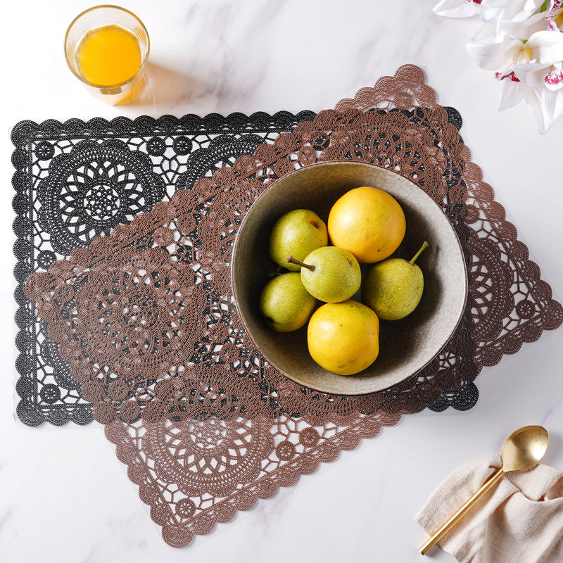 Rectangular table mat or placemat that adds to the dining table setup an organised and elegant element. Available in two colours, its neutral and sophisticated shades make it the perfect choice for both formal and informal occasions. The mats are reusable, laminated, durable and easy to place, clean and store. It protects the table against heat damage and scratches and can be used to make things look ordered on a dressing table.