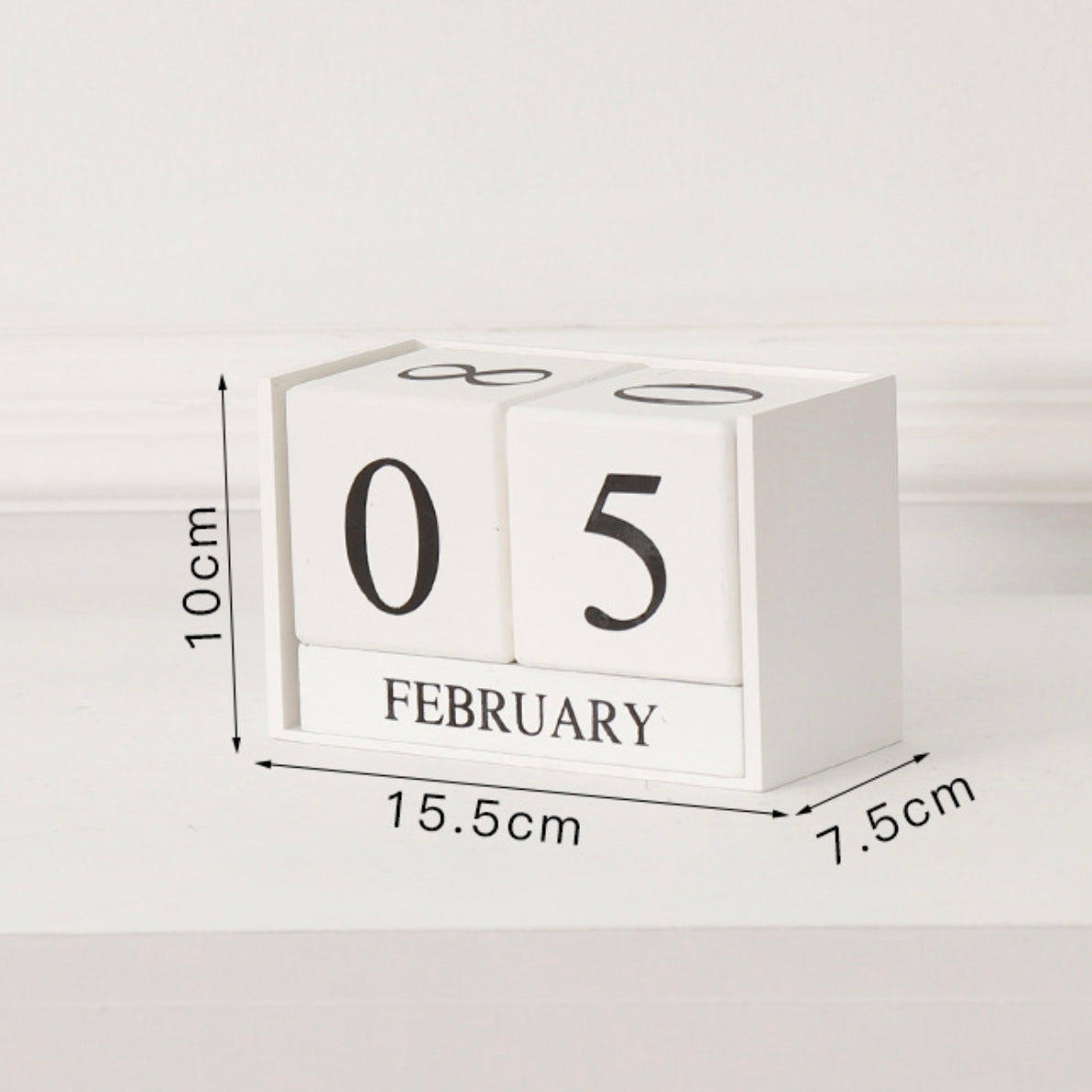 A white wooden table calendar with changeable block pieces is a compact calendar, unique in its look.